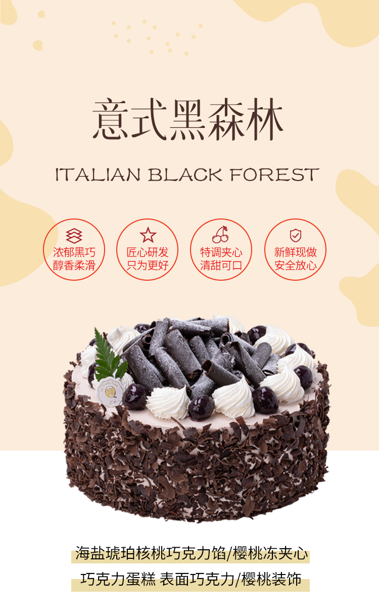 【新品推荐】意式黑森林 2磅蛋糕 100%新鲜现做 免费配送