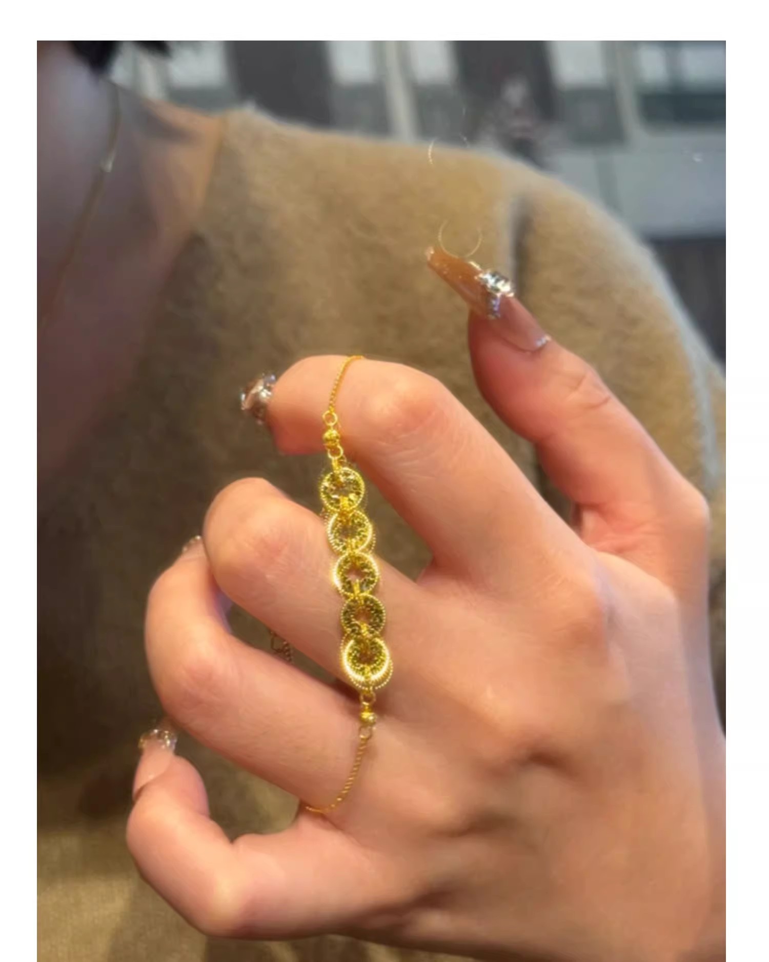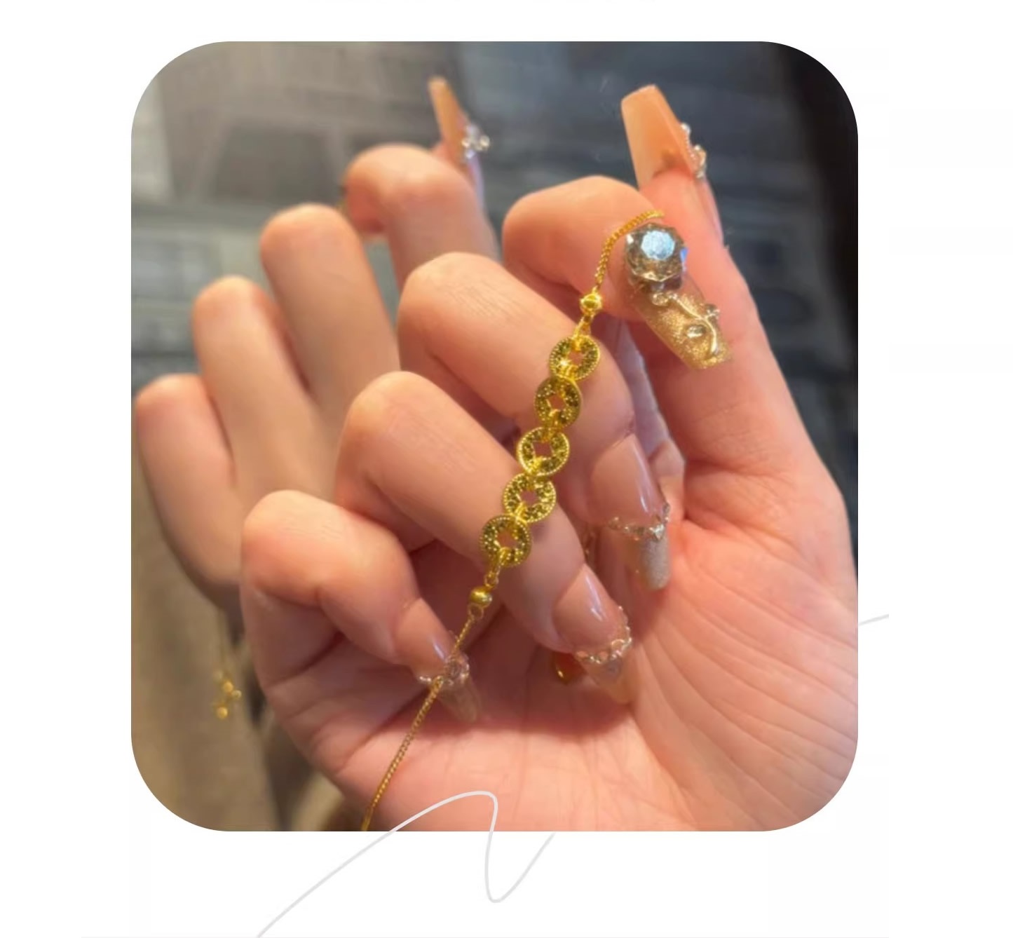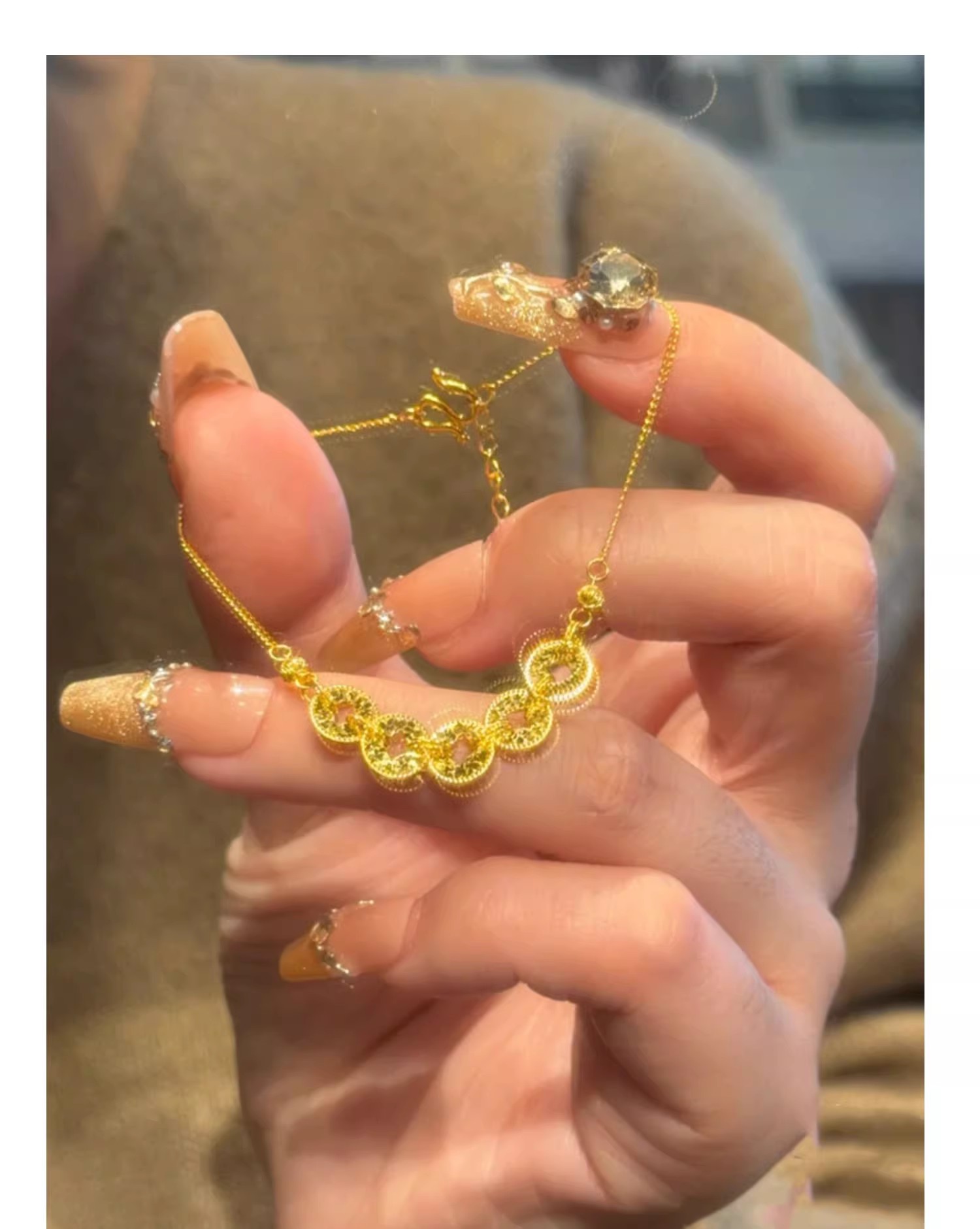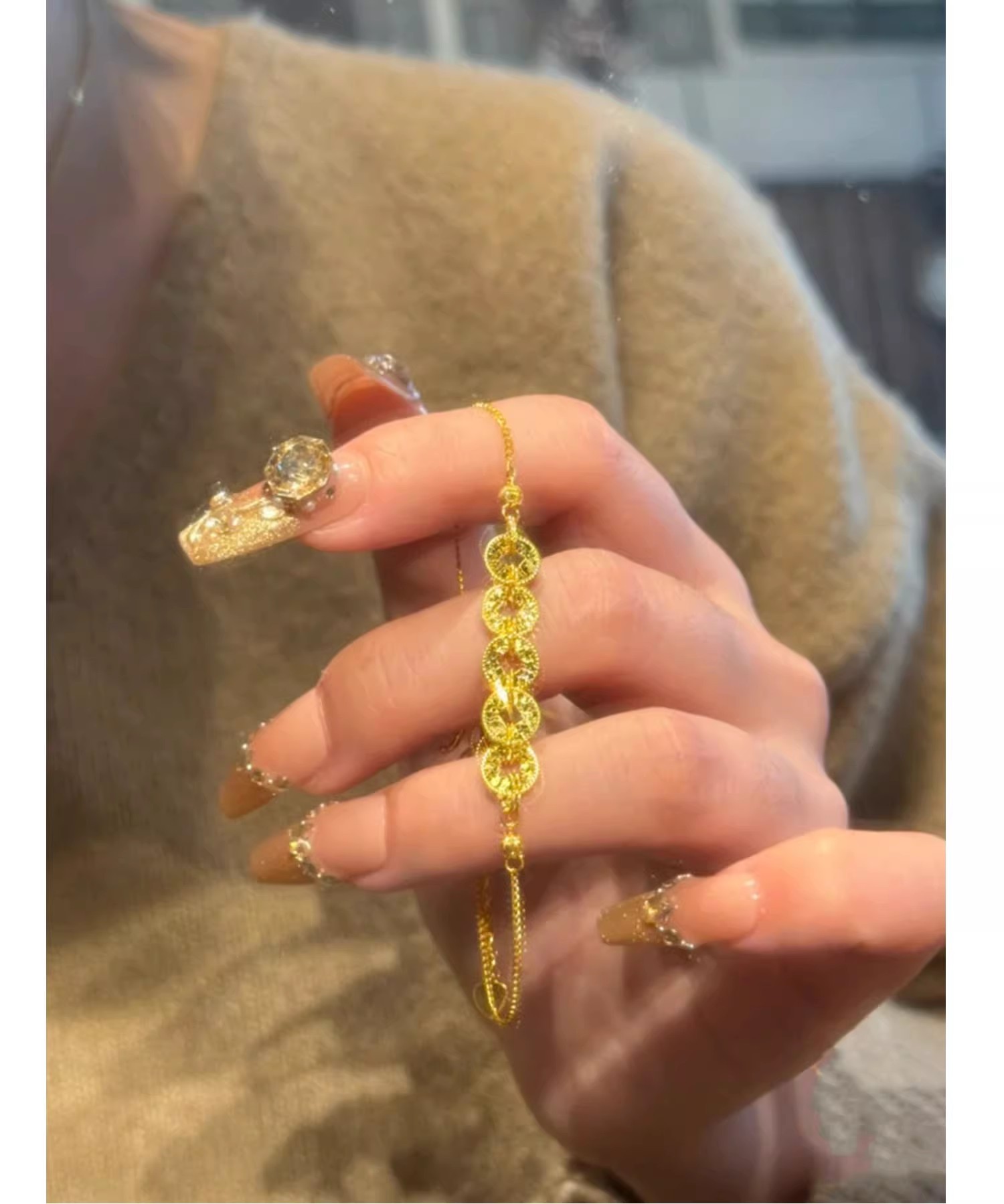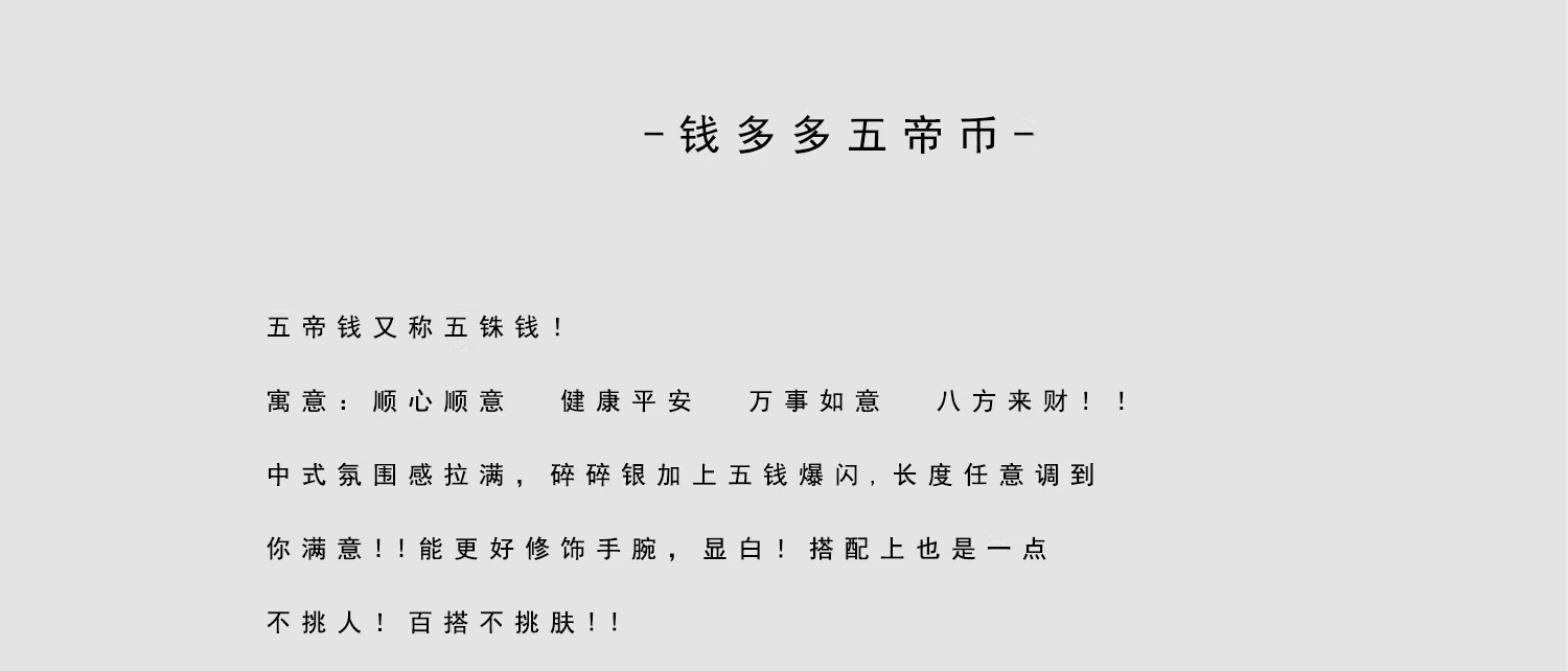 六鑫珠宝 碎冰冰五帝钱币手链 s925银镀金