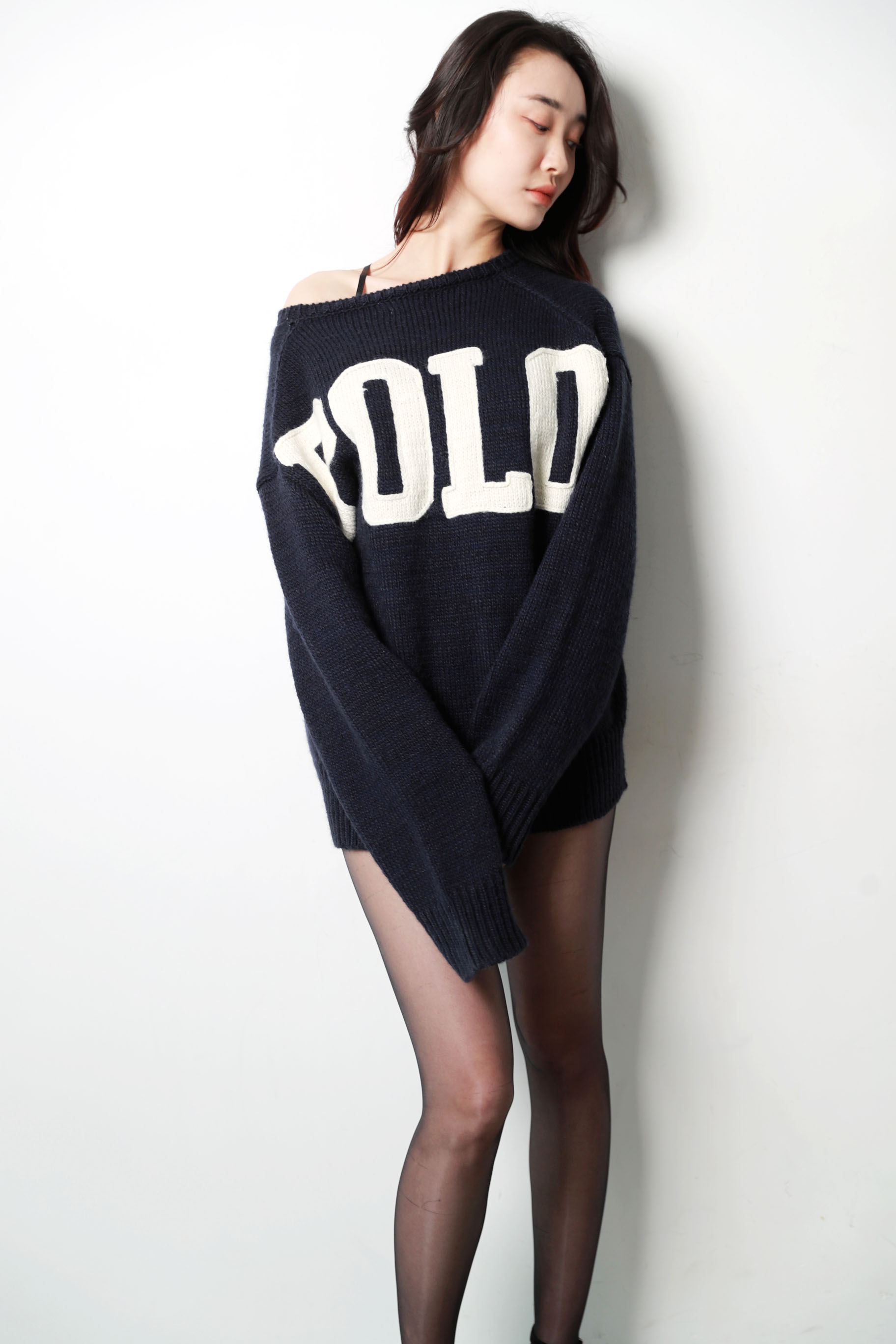 东都限定,怎么会这么温柔。胸口小标+背后大印花粗线毛衣E012988