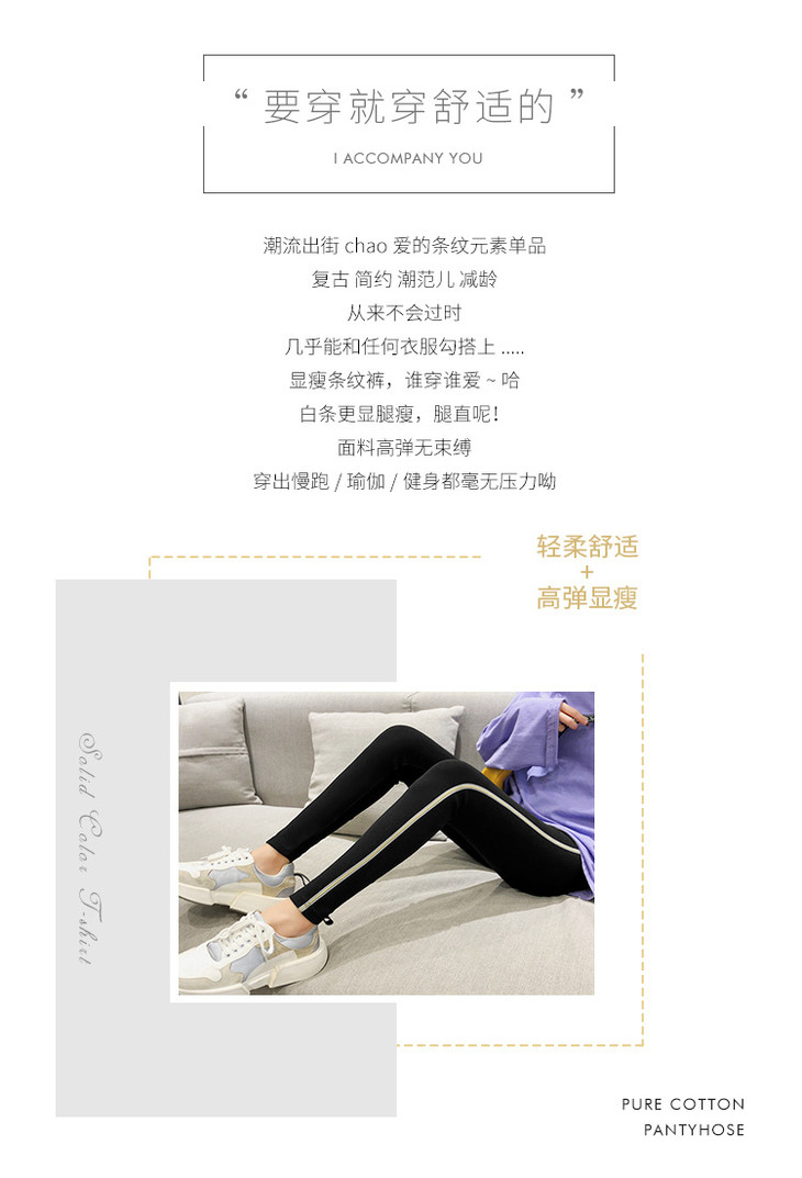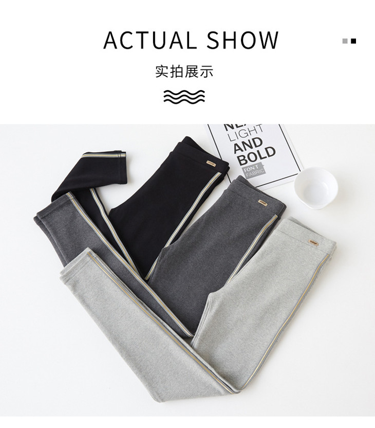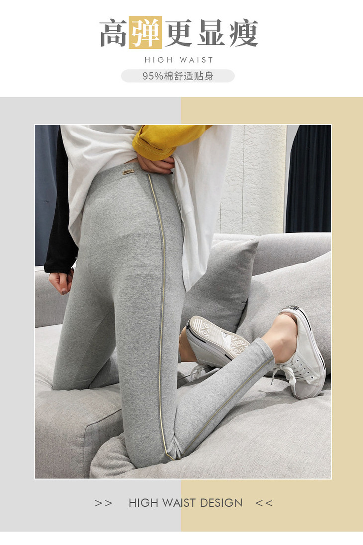 【服饰鞋包】秋冬纯棉打底裤 外穿薄款小脚裤 弹力裤子女侧边金条