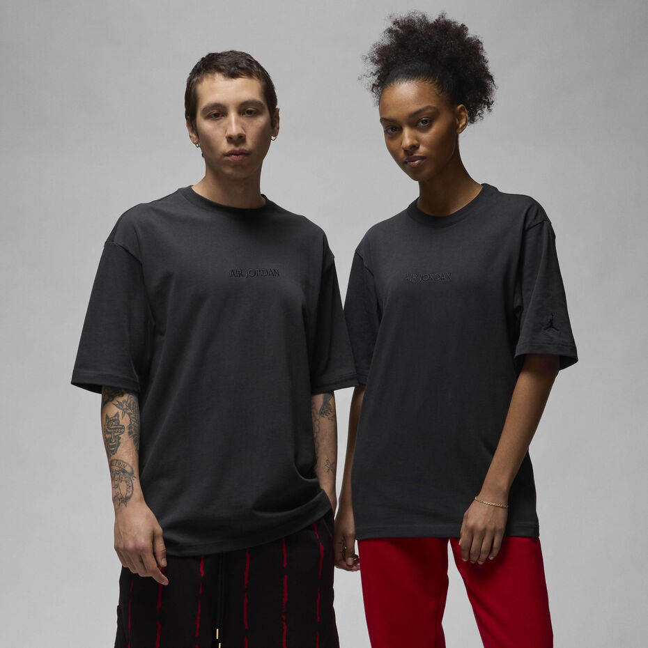 定制螺纹领口,胸前经典字母刺绣,袖子飞人绣标,精致立体的刺绣小logo