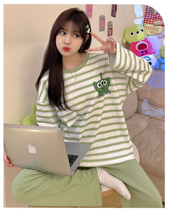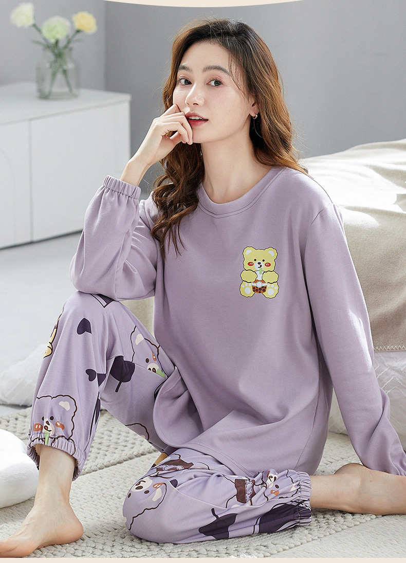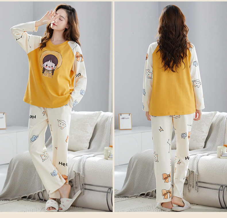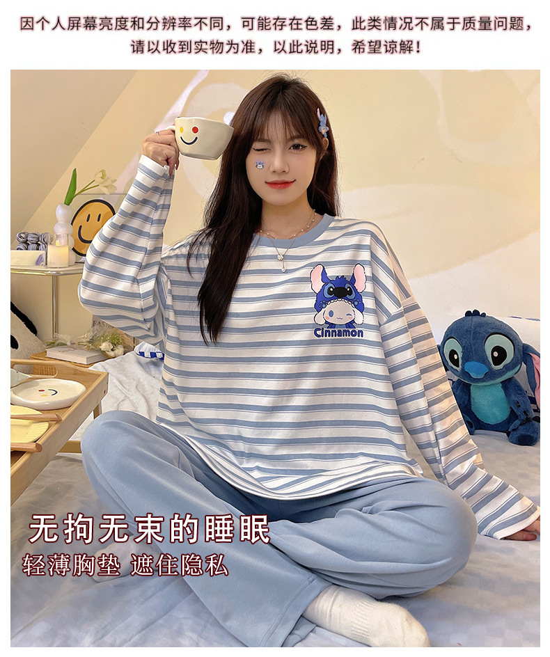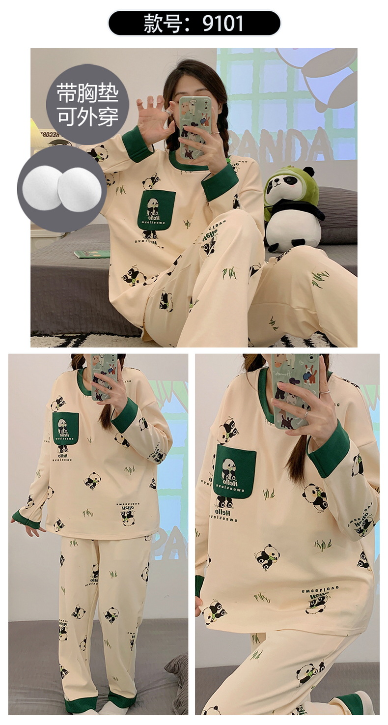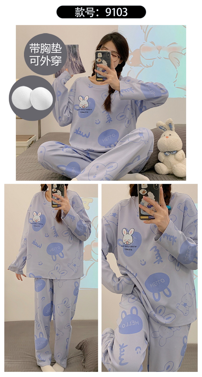 <有书独家>秋季新款家居服长袖睡衣女秋季卡通薄款棉质带胸垫家居服可外穿春秋学生睡衣冬套装