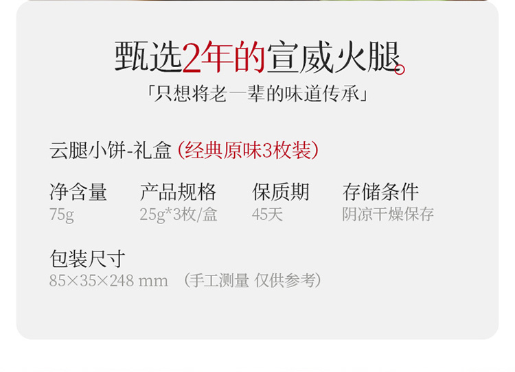 嘉华 原味云腿小饼3枚装礼盒 75g