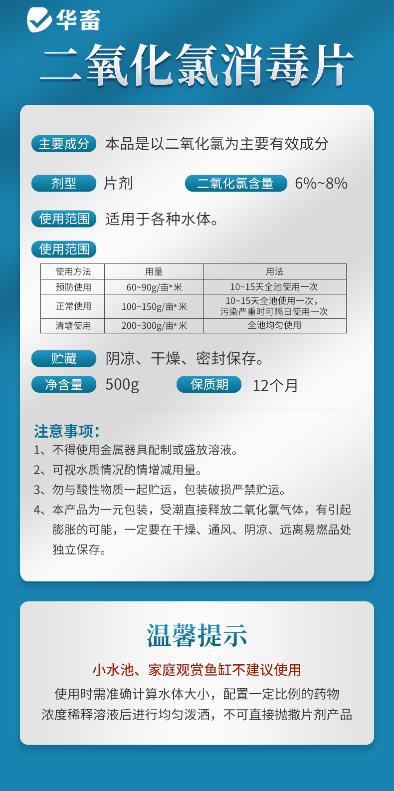 华畜 二氧化氯泡腾片500g 高含量 快速溶解 水产专用