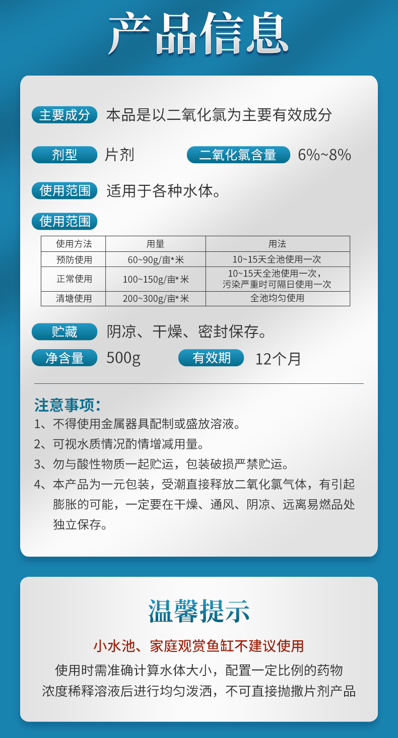 华畜 二氧化氯泡腾片500g 高含量 快速溶解 水产专用