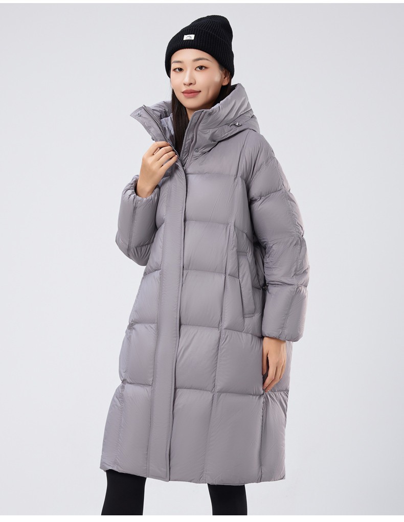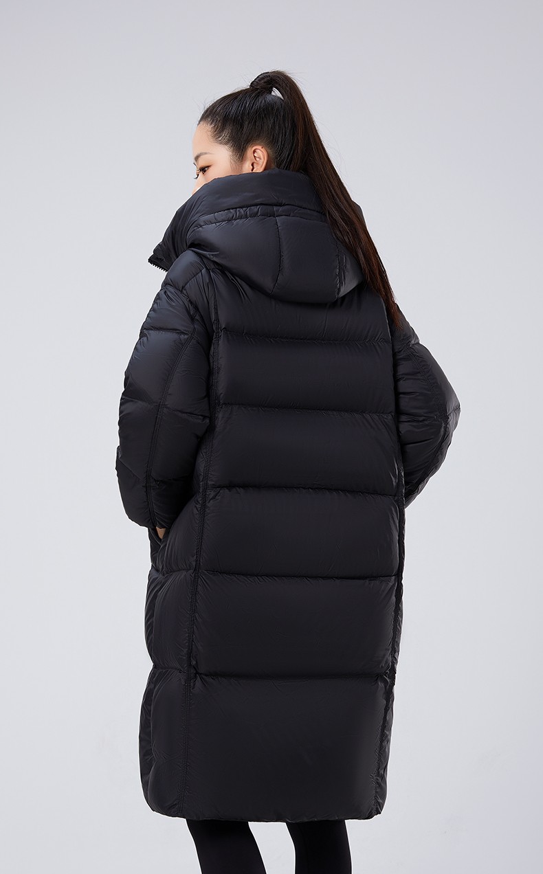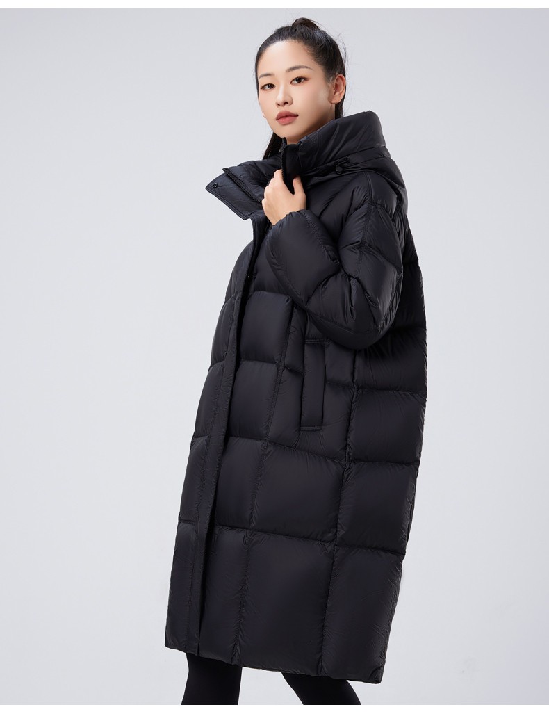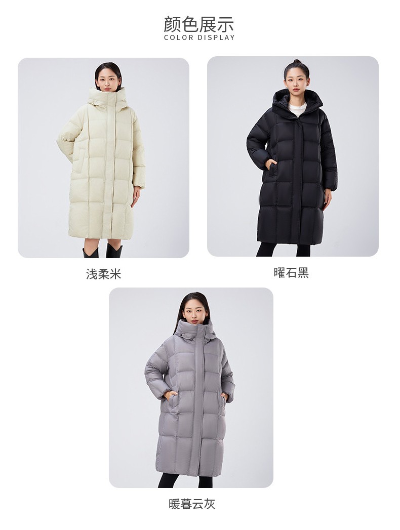 女士8827长款立领连帽羽绒服 360度防寒无死角 90鸭绒(常熟羽绒服工厂购)