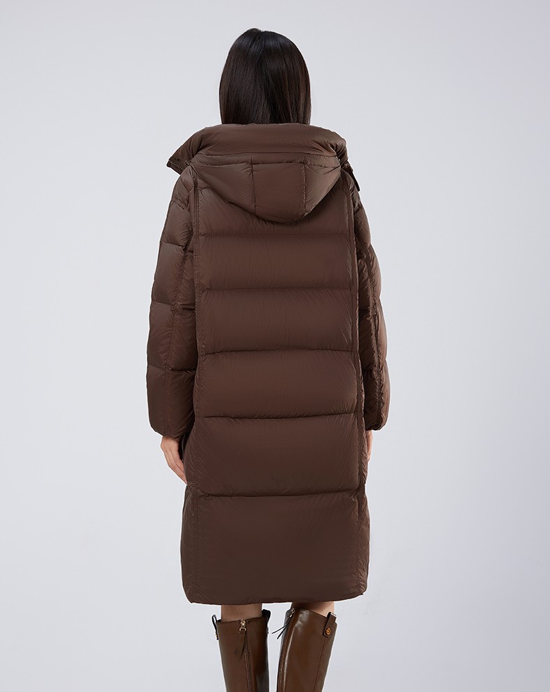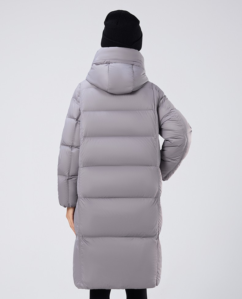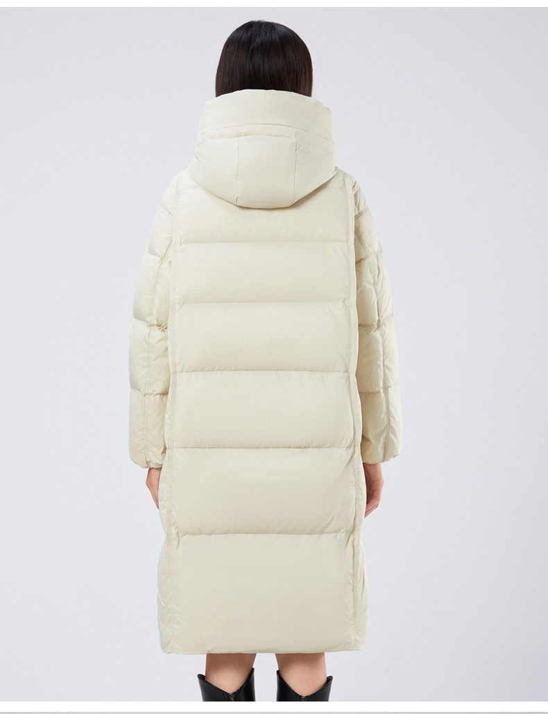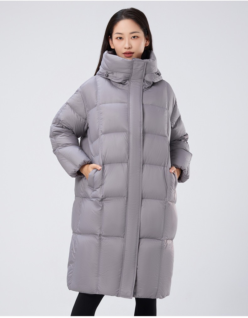 女士8827长款立领连帽羽绒服 360度防寒无死角 90鸭绒(常熟羽绒服工厂购)