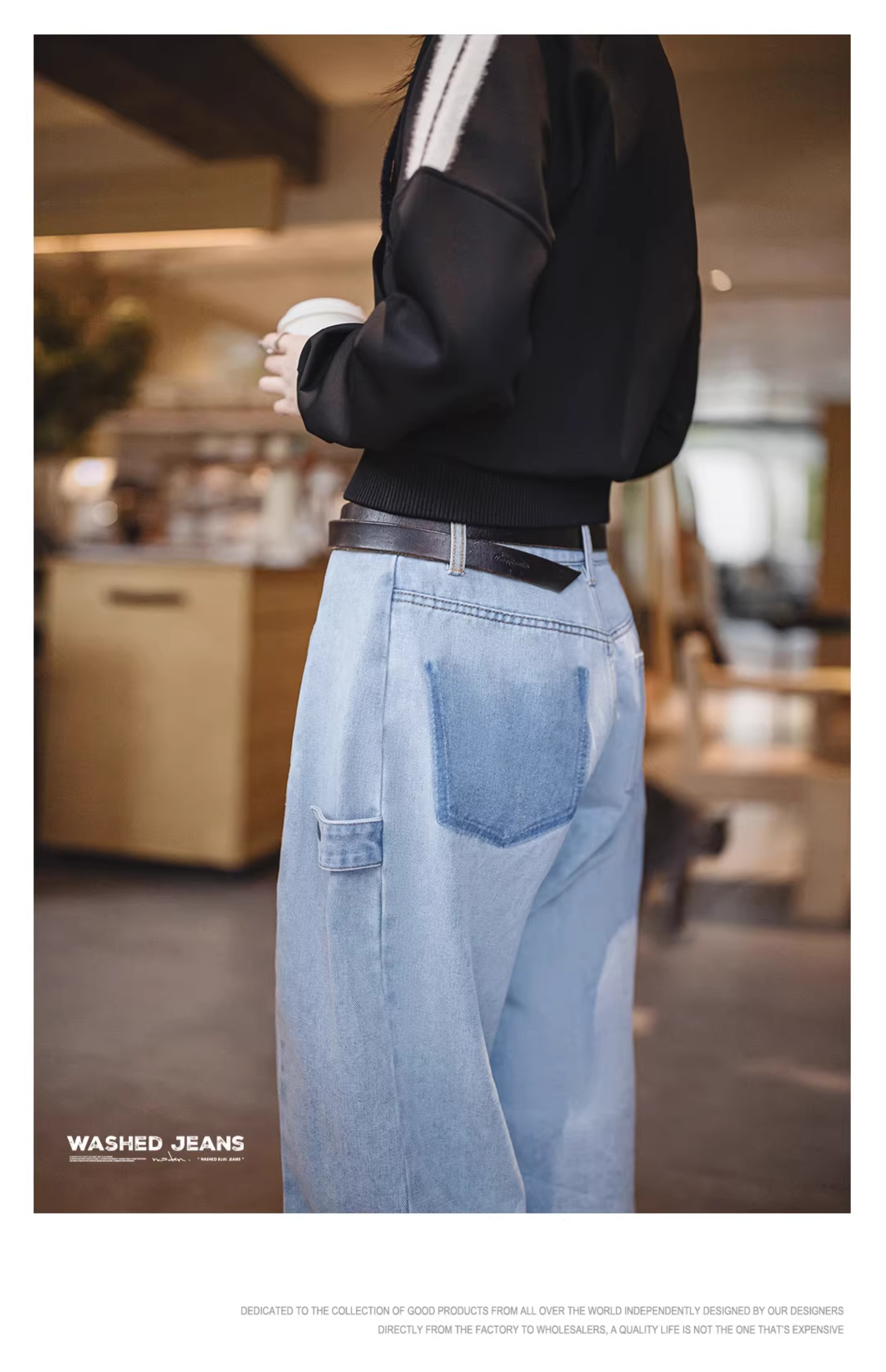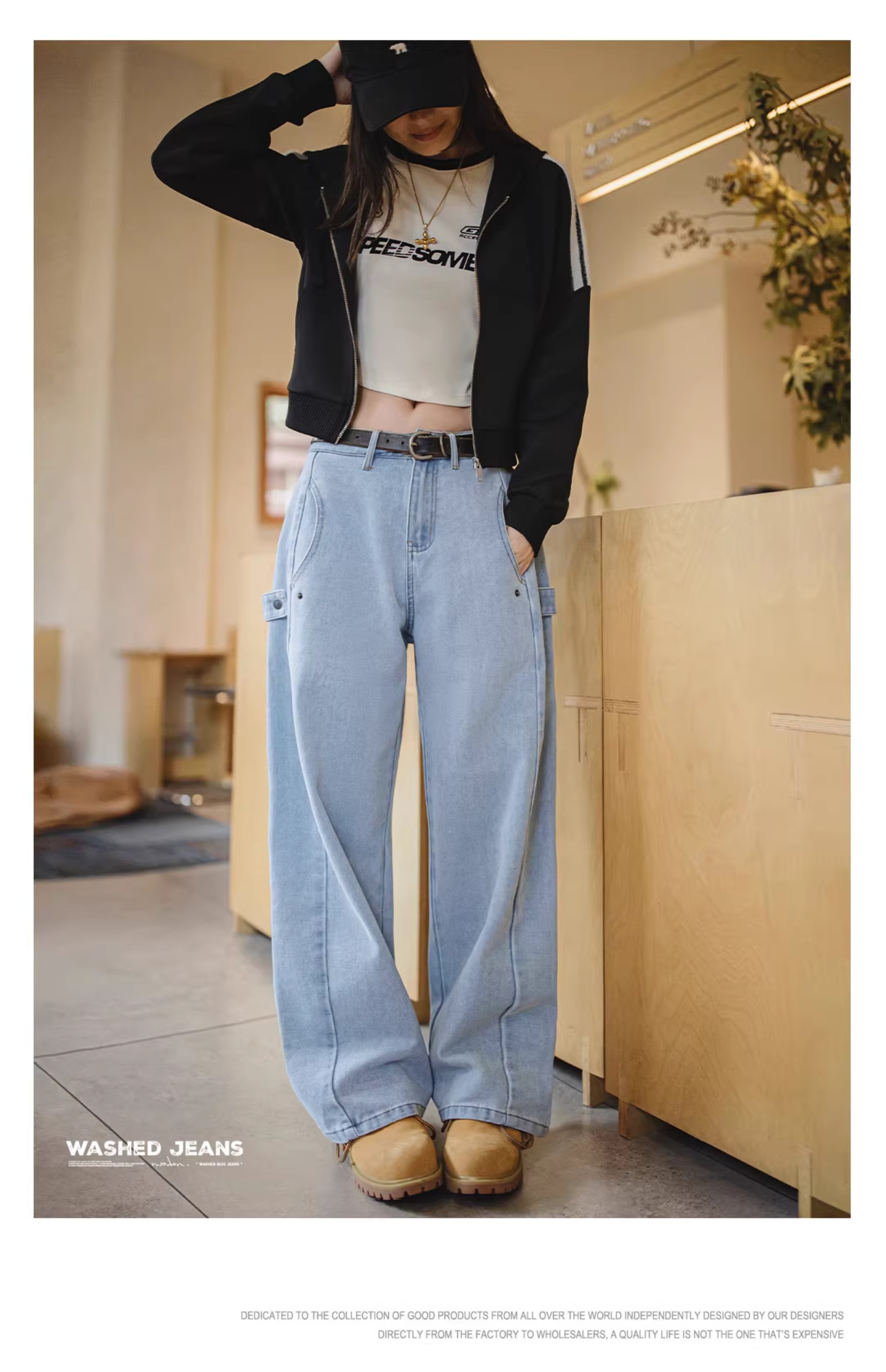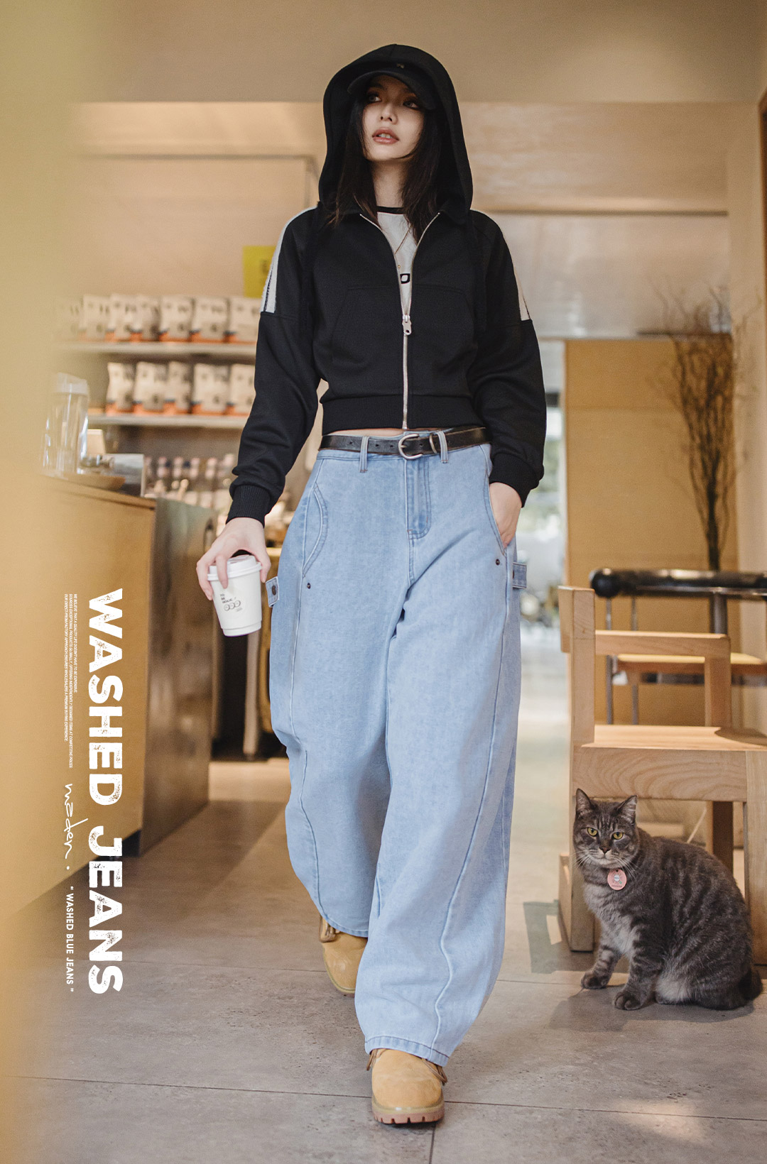 马登boxyfit解构感复古拆袋水洗牛仔裤高街跳舞直筒阔腿裤子春女