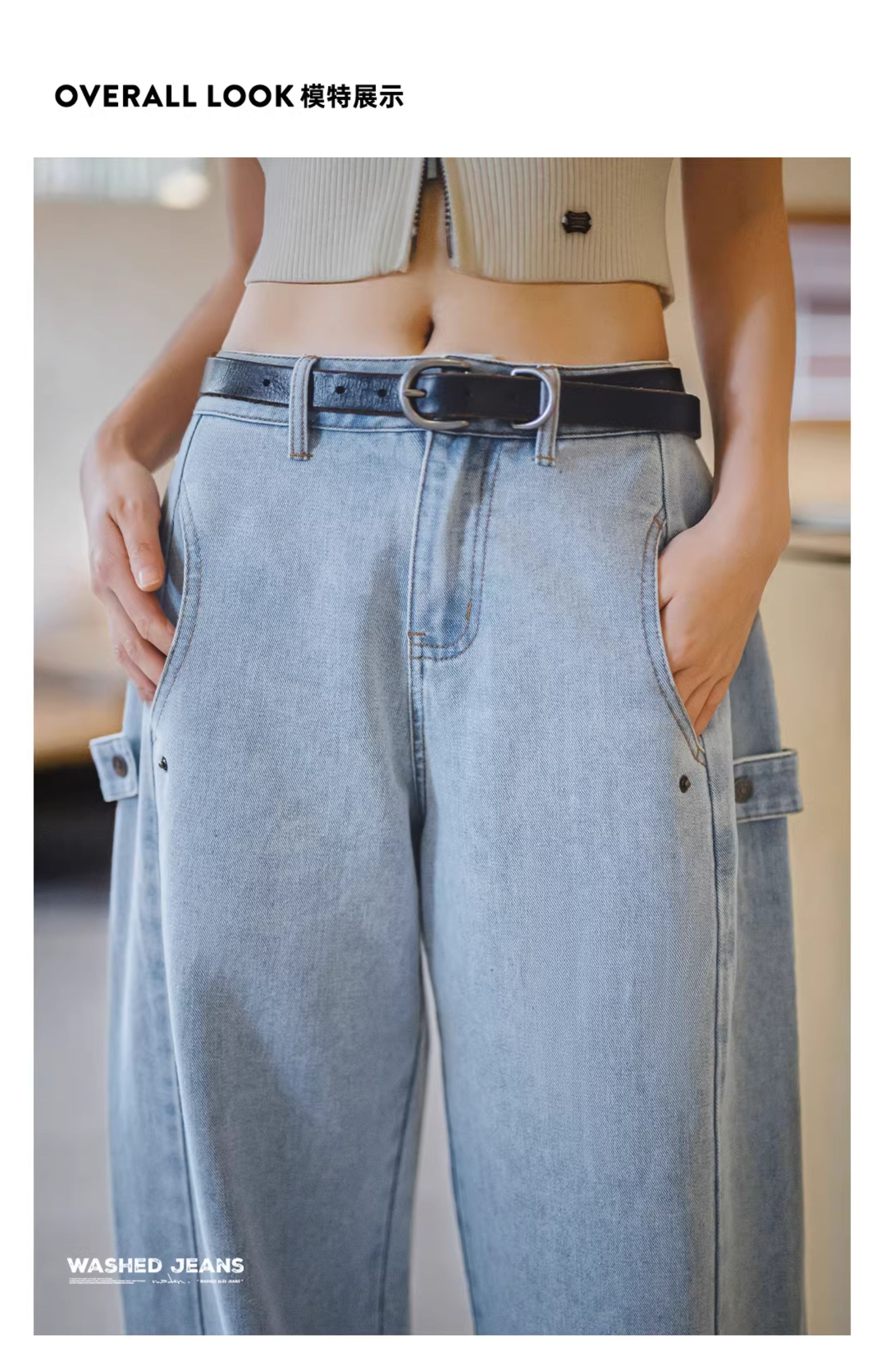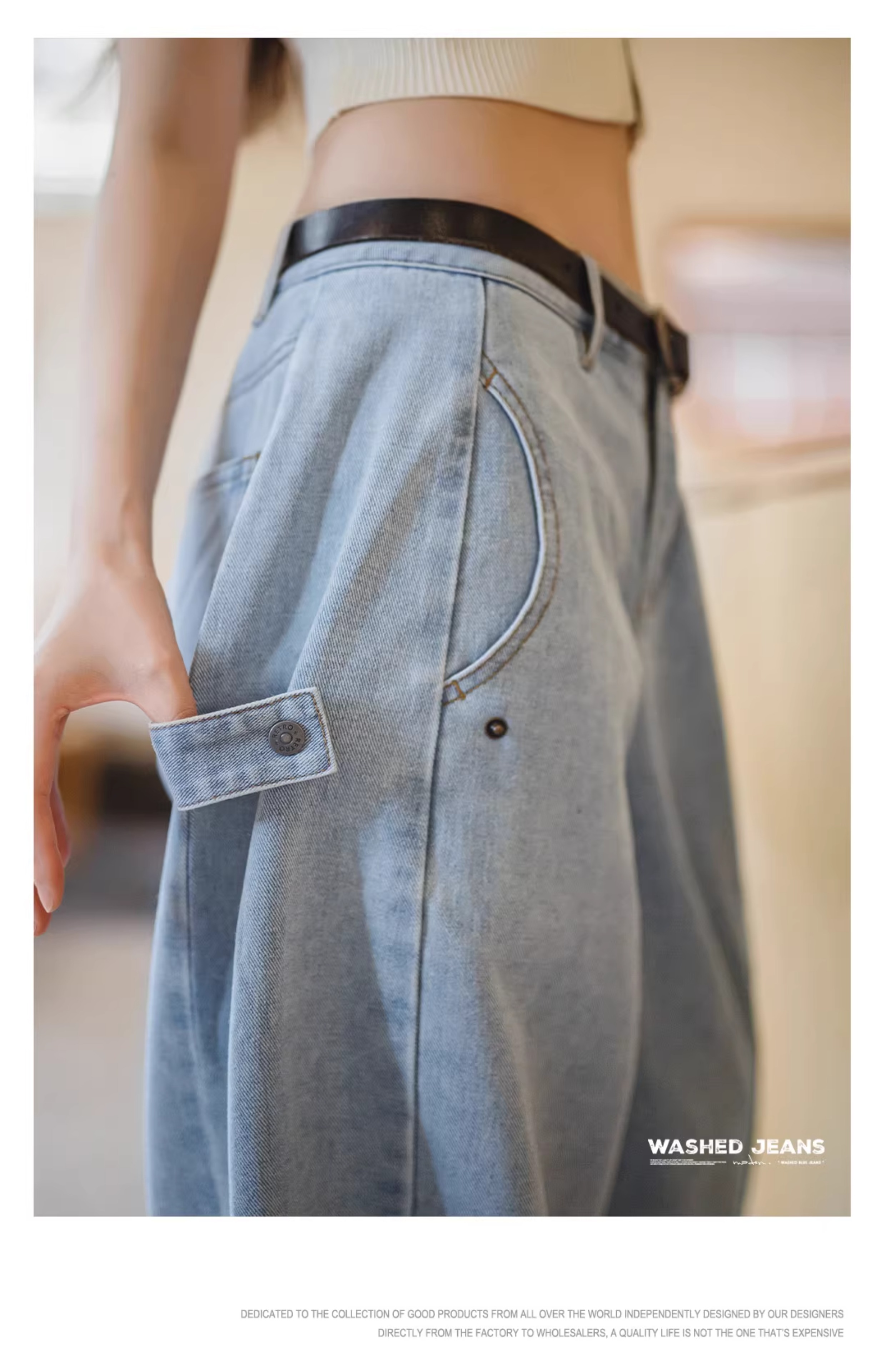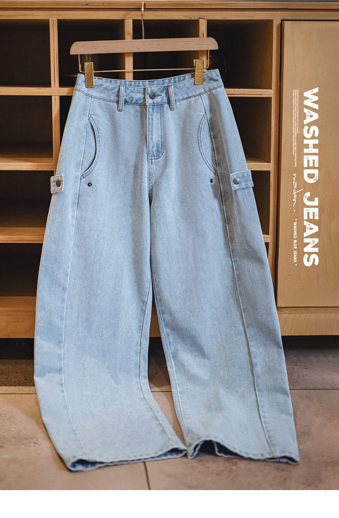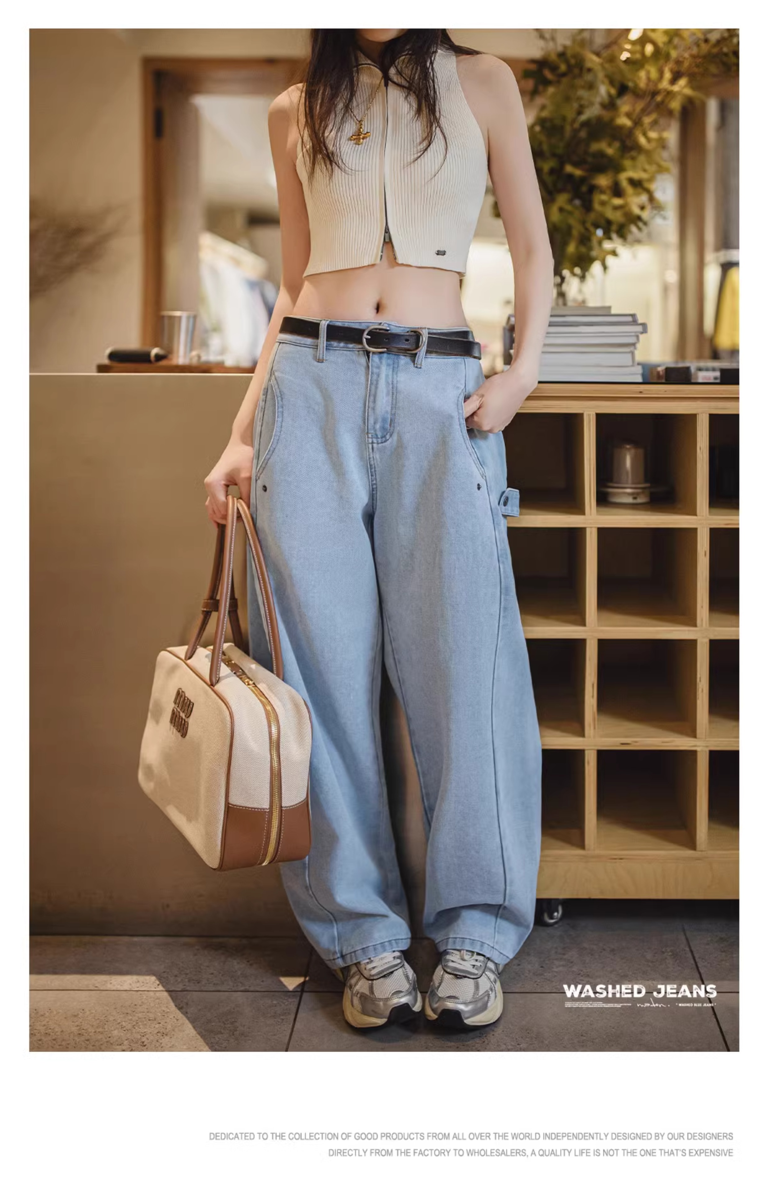 马登boxyfit解构感复古拆袋水洗牛仔裤高街跳舞直筒阔腿裤子春女