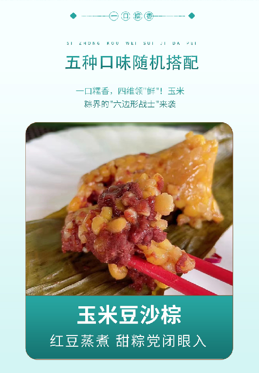 玉米豆沙粽:玉米、饮用水、红小豆、白砂糖、猪油