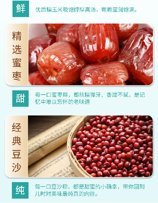 玉米蜜枣粽:玉米、饮用水、蜜枣