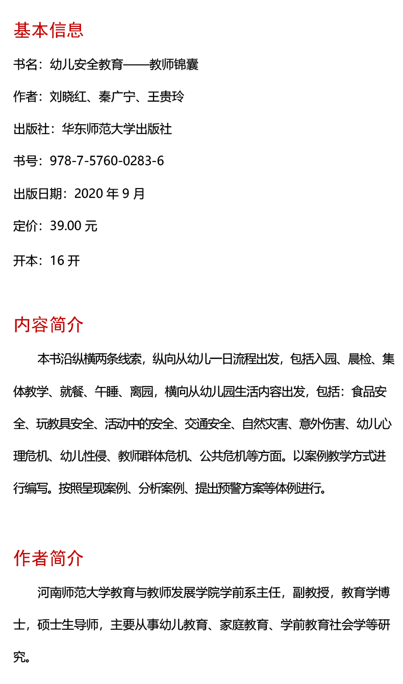 幼儿安全教育 教师锦囊 给幼儿教师的98个安全锦囊 正版 华东师范大学出版社