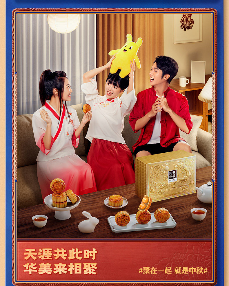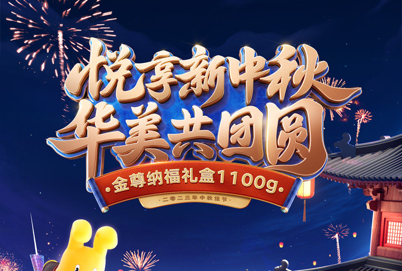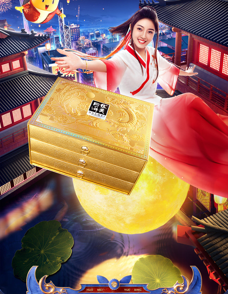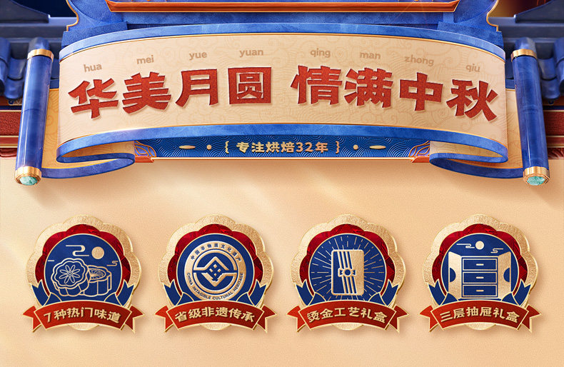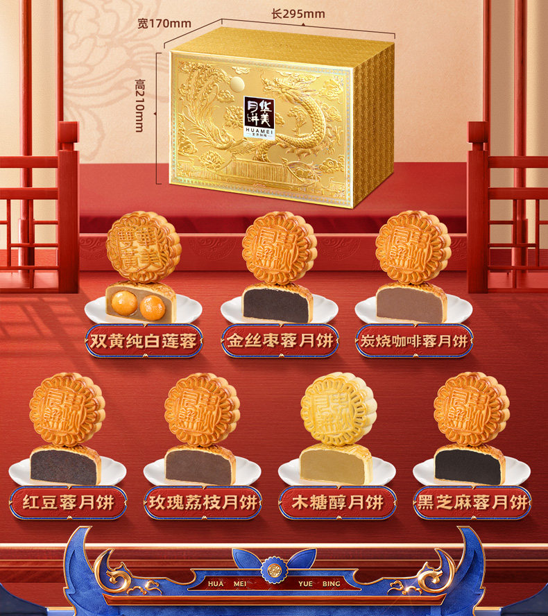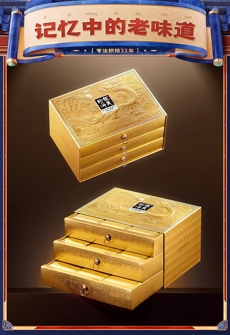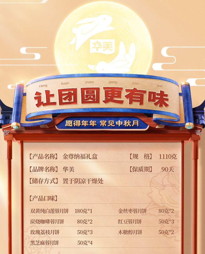 华美金尊纳福月饼礼盒1100g(精装三层礼盒)