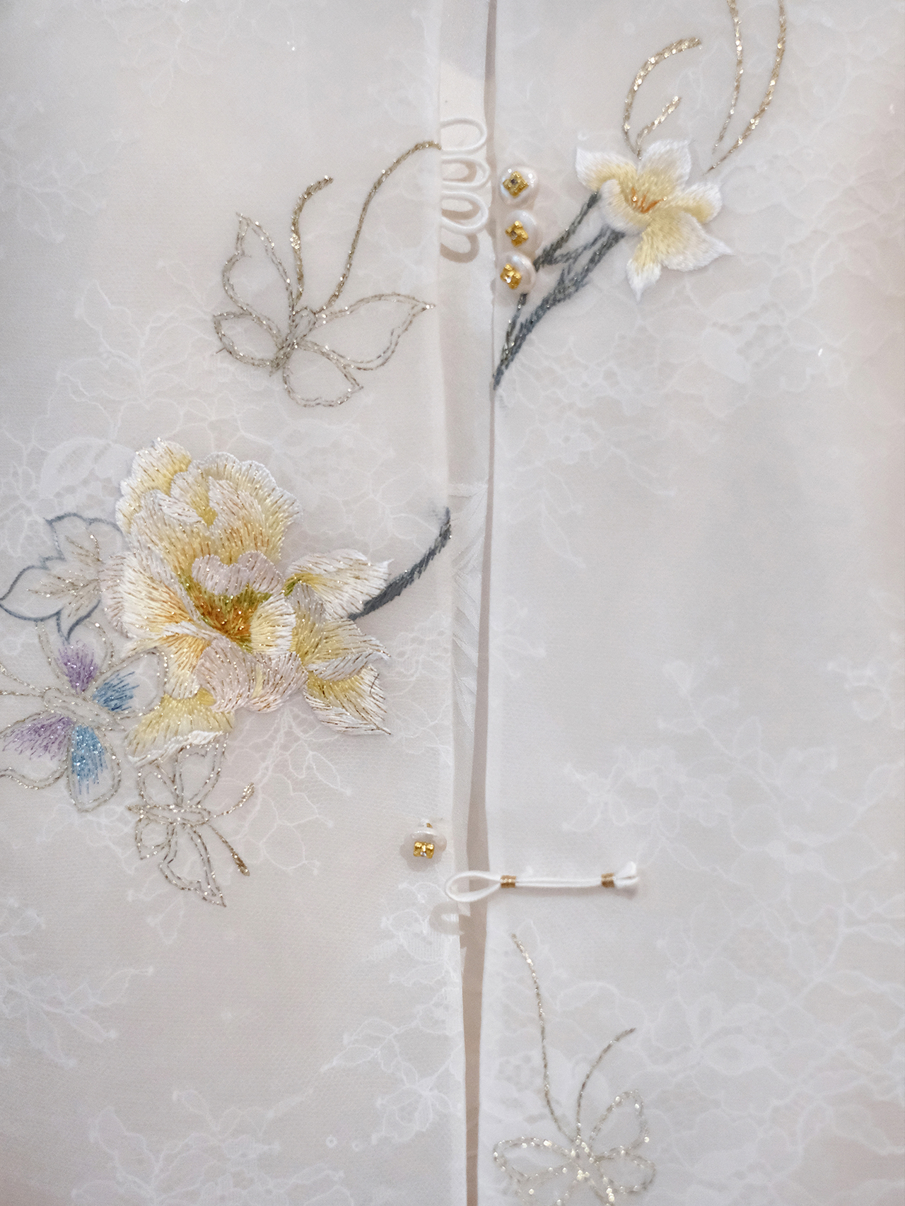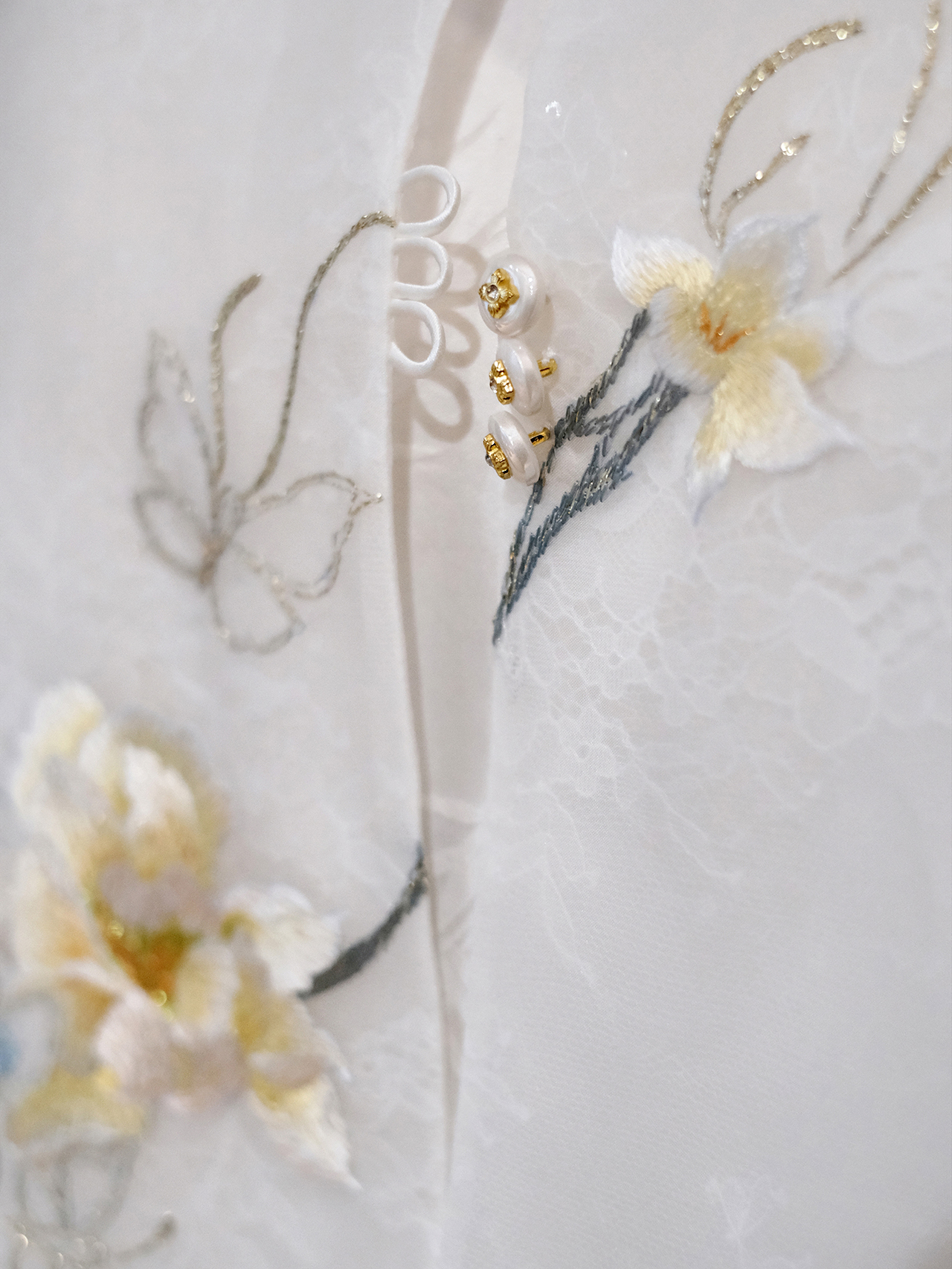 盛唐牡丹大师系列-卢梅红 | 月执金蕊真丝蕾丝面刺绣马甲