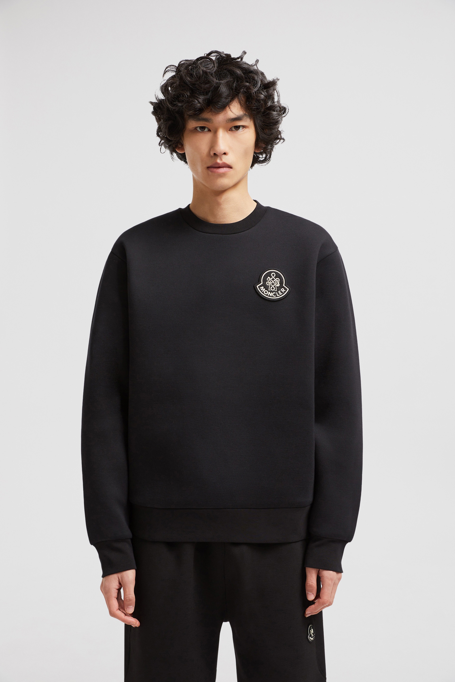 特殊设计的元素标志的刺绣植绒贴布装饰于胸前,舒适精致,上身很有高级感。