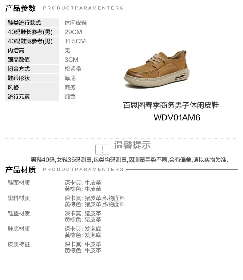 【云粉节】BF楼百思图2026春季新款商务通勤男休闲皮鞋WDV01AM6 吊牌价999.现价500