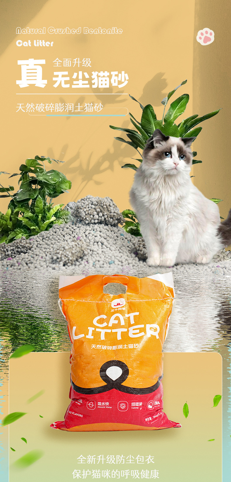 严选宠物猫砂除臭小颗粒近无尘鹏润土猫砂10斤祛味结团吸水家用