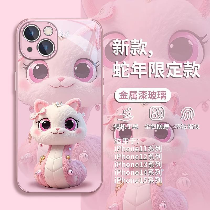 【蛇年限定款!苹果安卓玻璃手机壳】苹果16promax蛇年手机壳iPhone15玻璃液态手机壳布偶蛇14好运卡通13创意本命年12。ry
