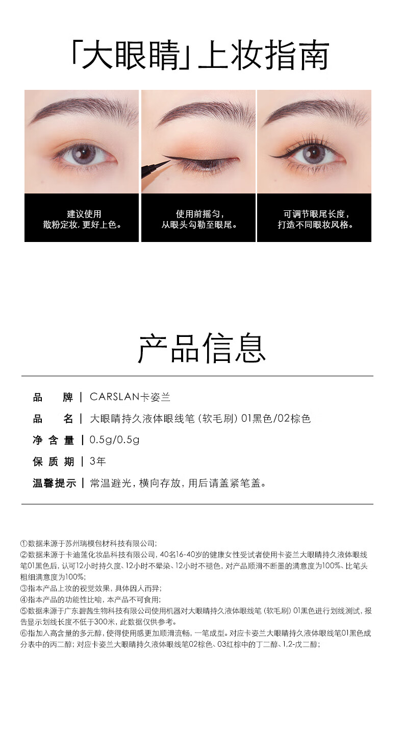卡姿兰大眼睛持久液体眼线笔(软毛刷)黑色0.5g【30171885】