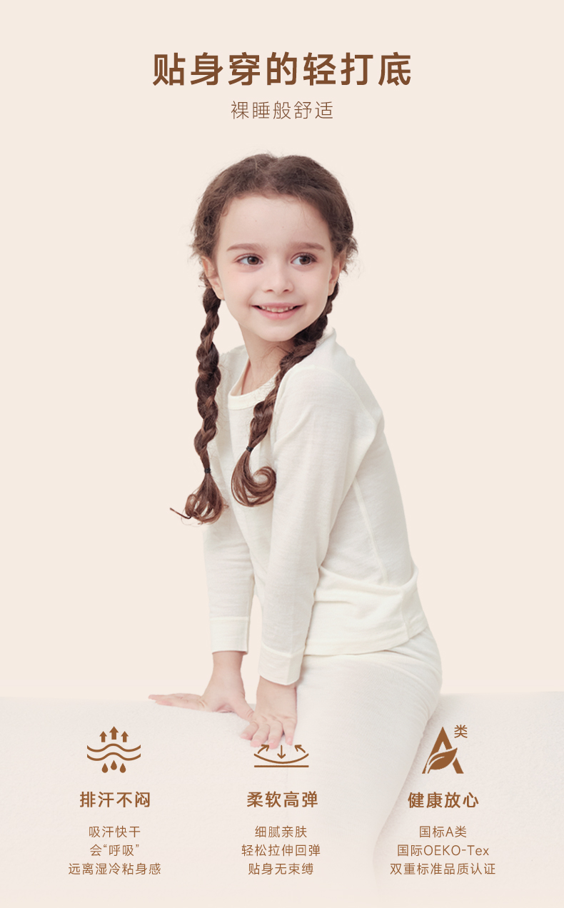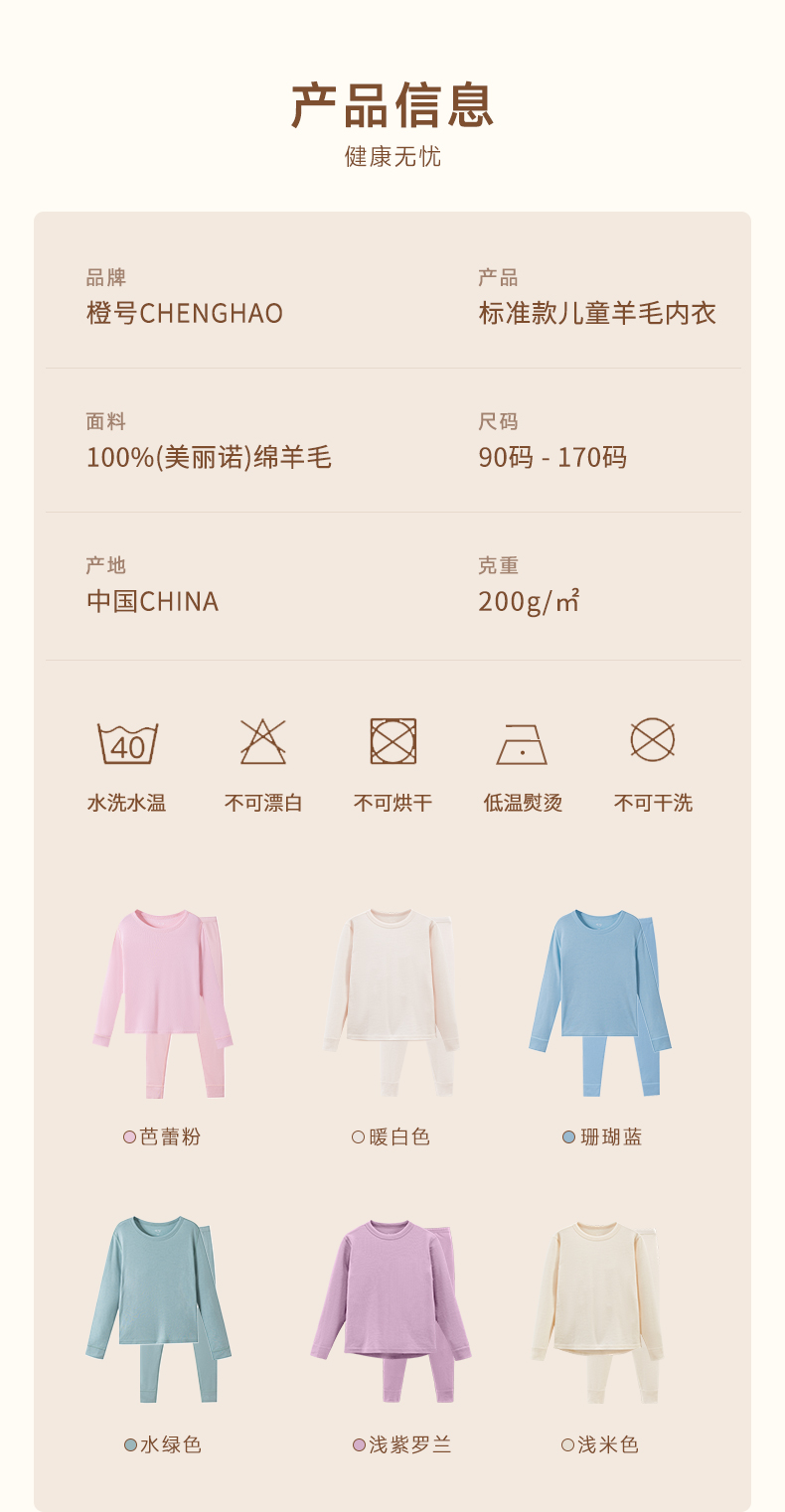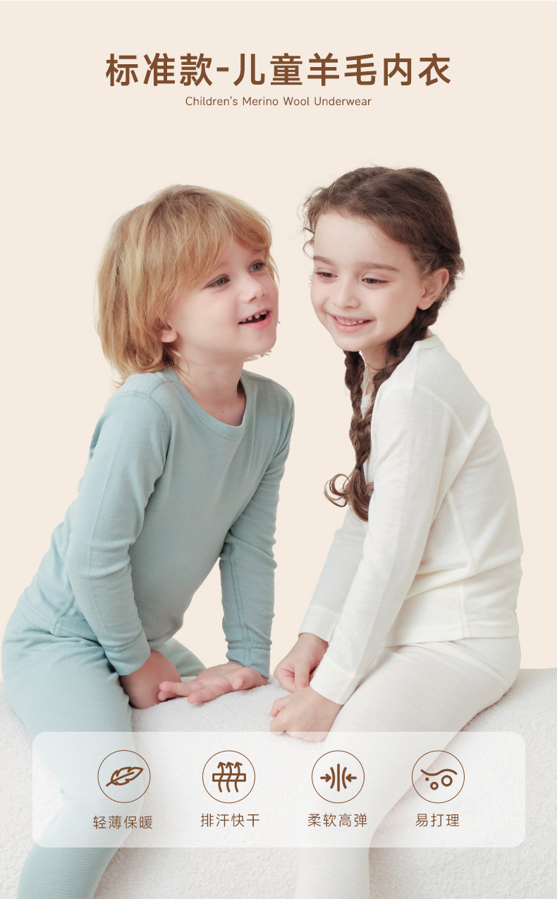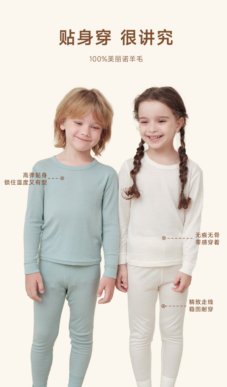 低于双12【90-170】橙号100%美丽诺羊毛儿童标准款秋衣秋裤2025年 克重200g/㎡