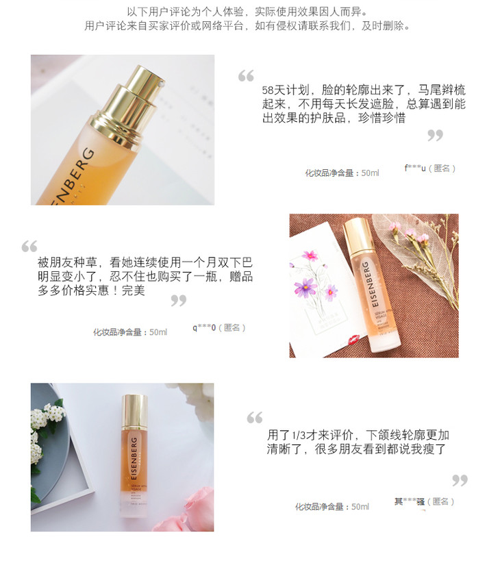 今天上的是法国的EISENBERG紧致精华露,我很多年前用过,还蛮贵的,但很好用。后来代购买不到了,就渐渐遗忘。这次法国贸易商推荐给我时,我才又想起它来,立马来上架!不要觉得贵,我以前买我记得是八九百了,人家品牌就不是平价杂牌哦。
