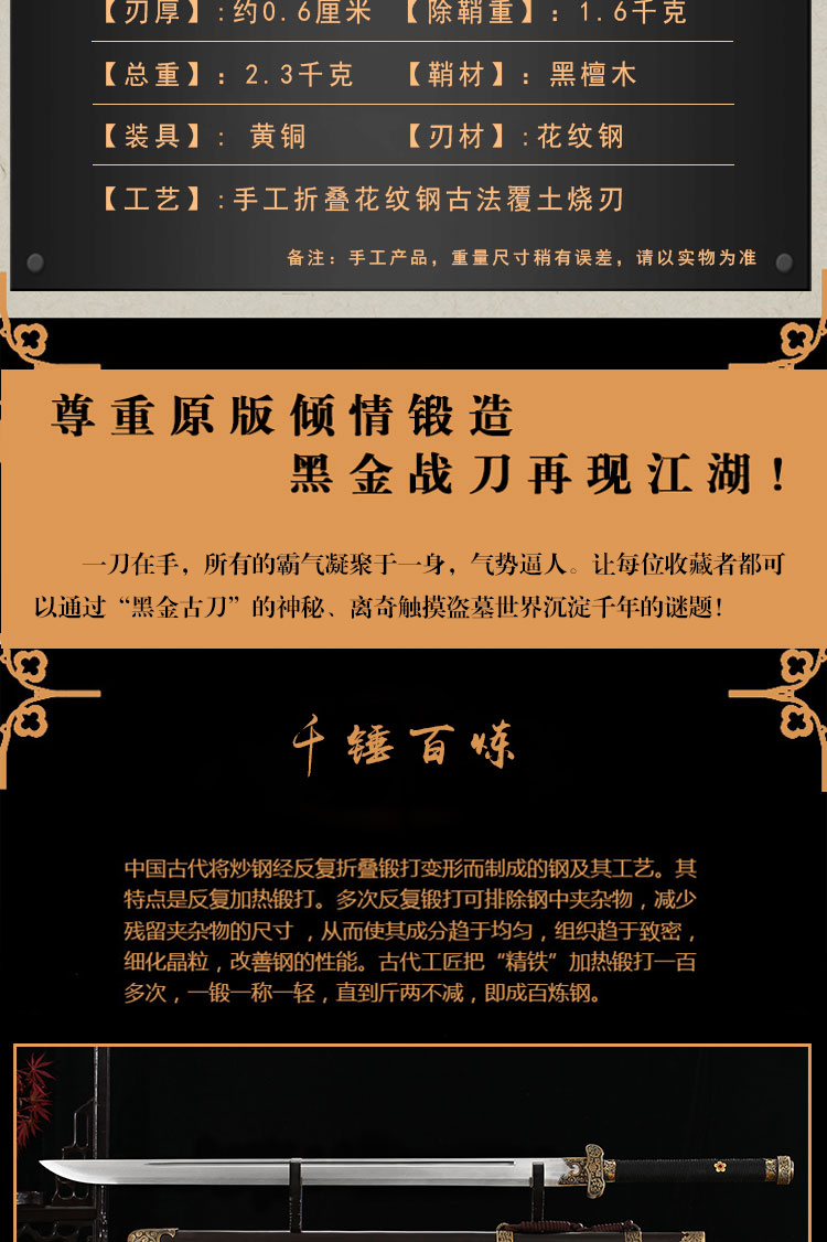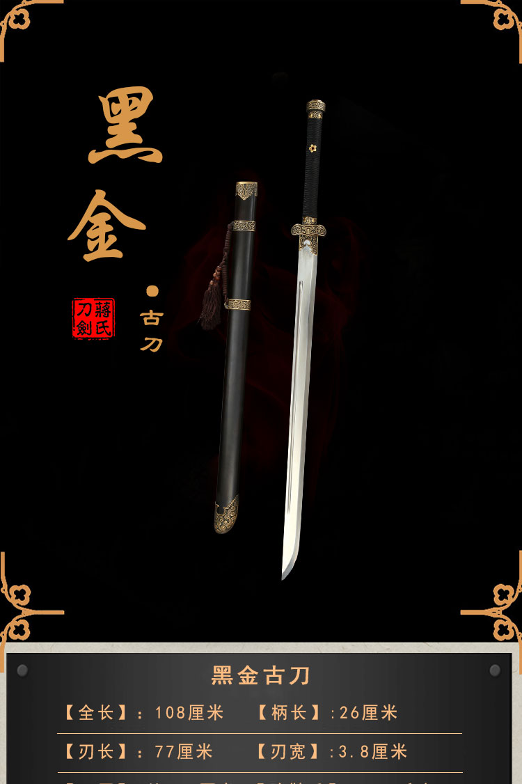 蒋氏刀剑 黑金古刀盗墓笔记张起灵刀 未开刃
