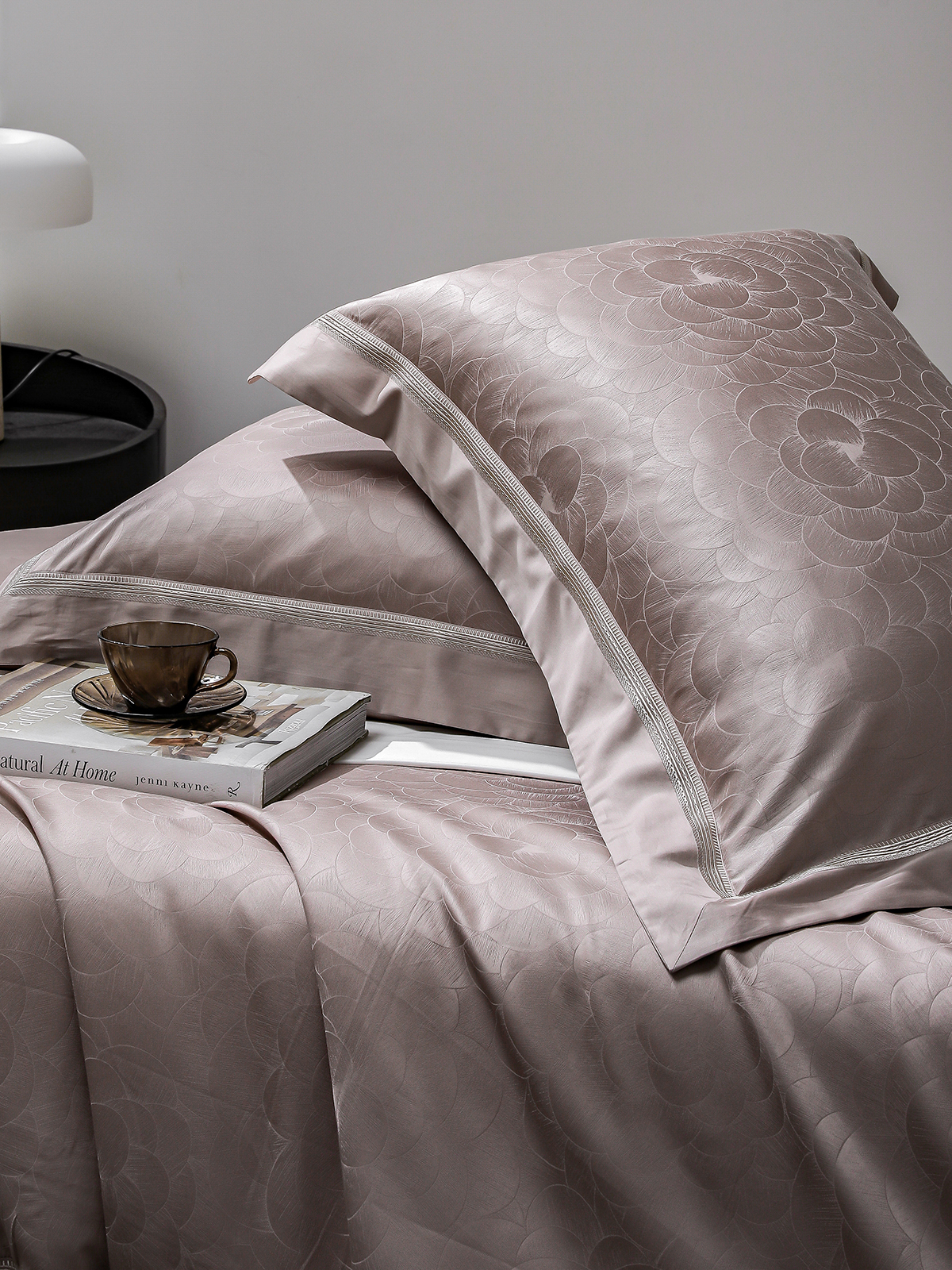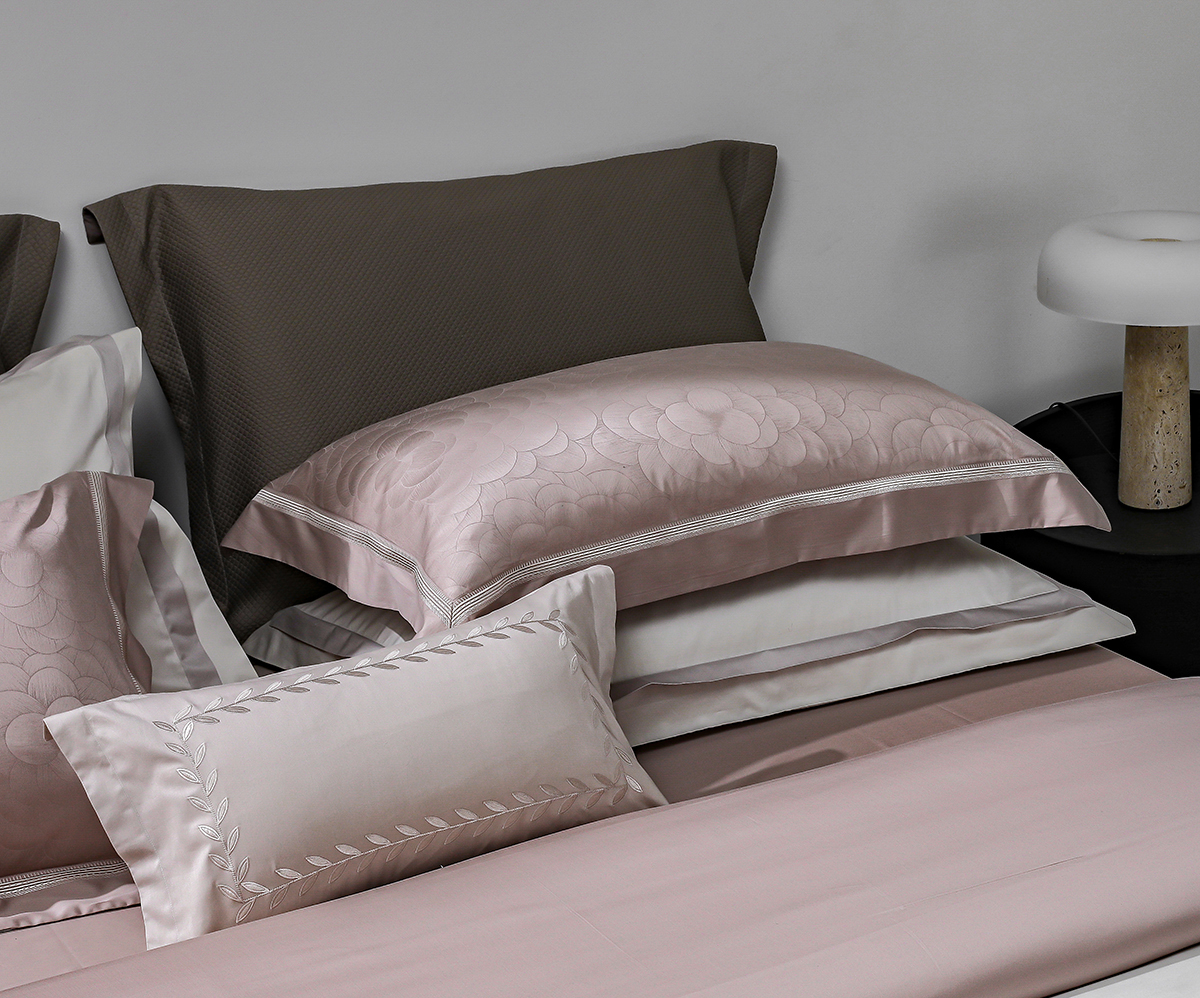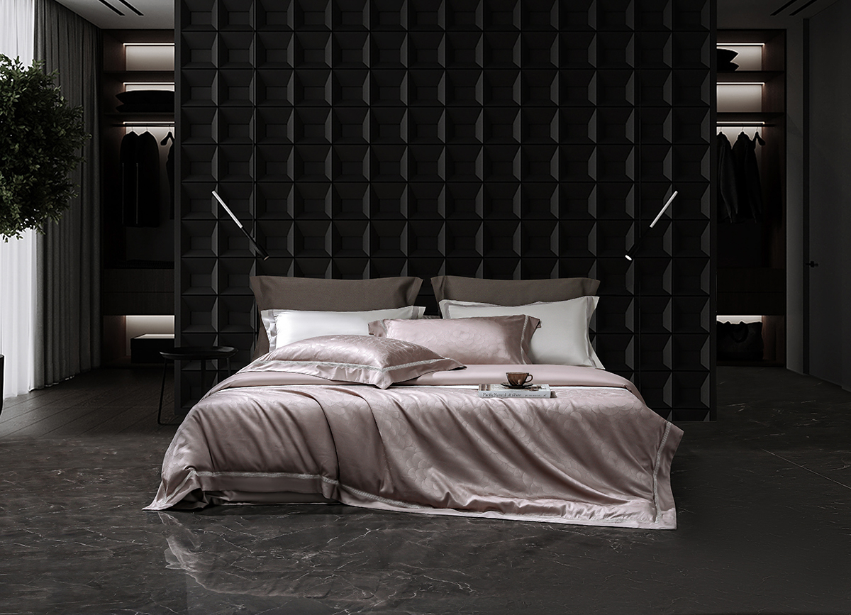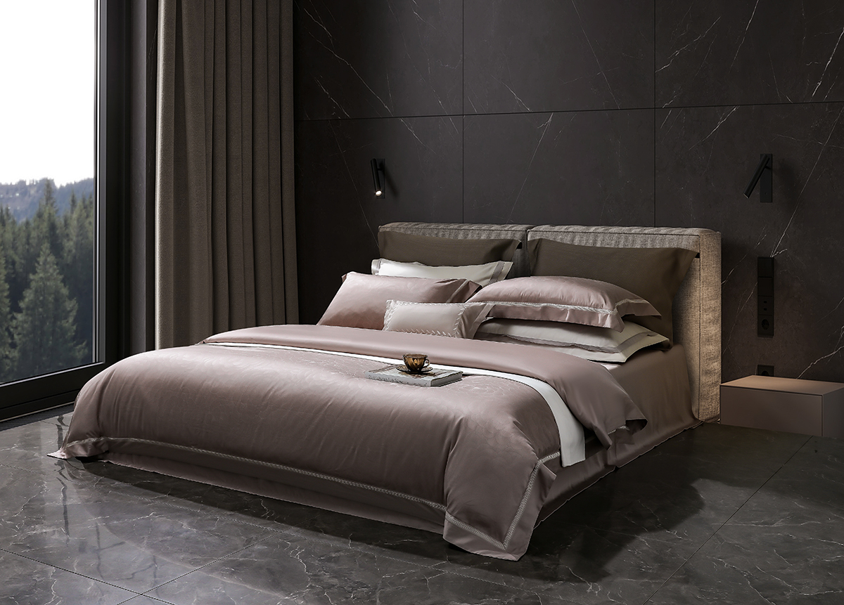 甄选新疆阿克苏长绒棉,高支高密织造,面料近看如珍珠般光泽耀人,肌肤轻触软糯丝滑,暗纹提花微微凹凸肌理感,如浮雕一般,高级立体感。
