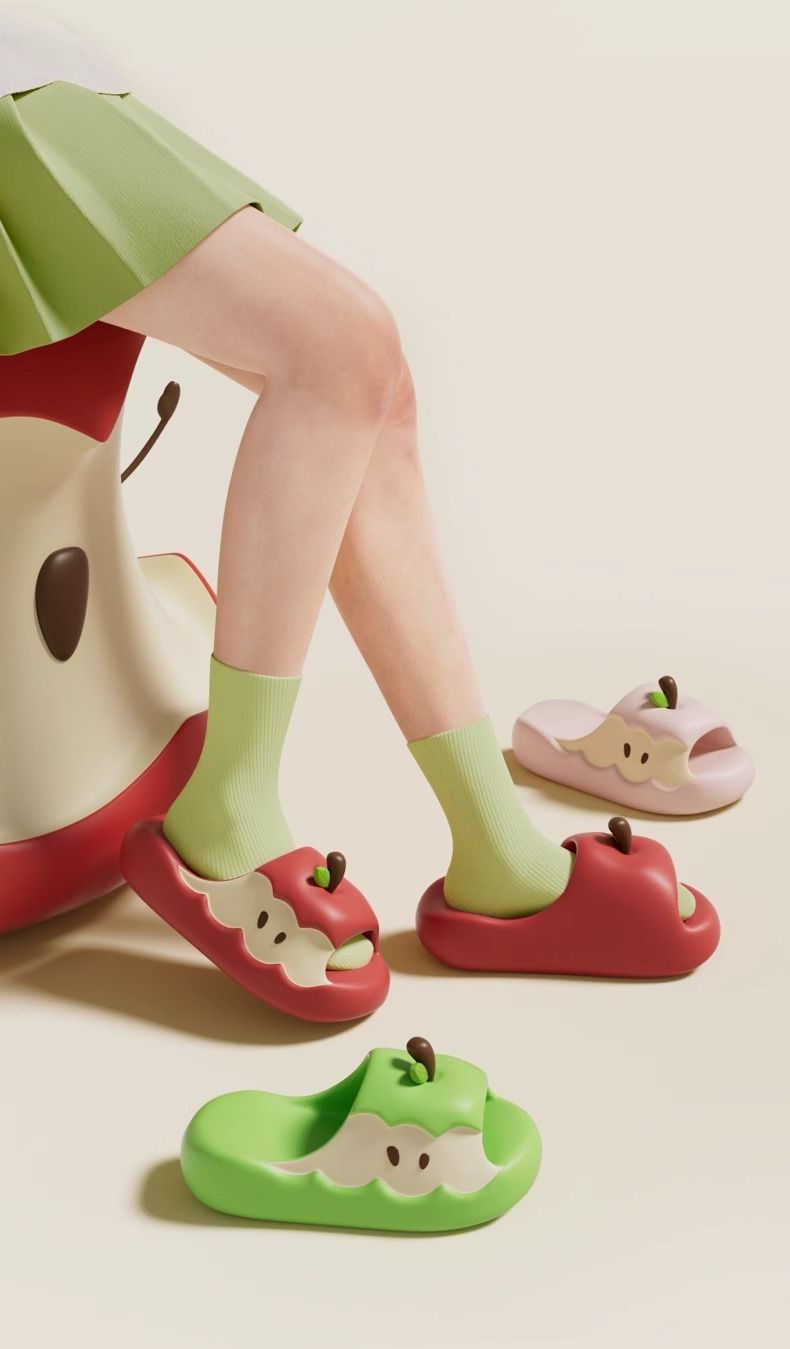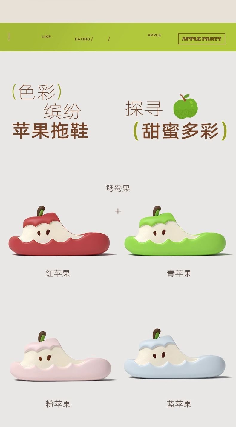 热卖!不闷不臭脚!云朵感 可爱 厚底凉拖!YiLuoShan 四色苹果EVA防滑拖鞋 居家 宿舍 外出 4色可选