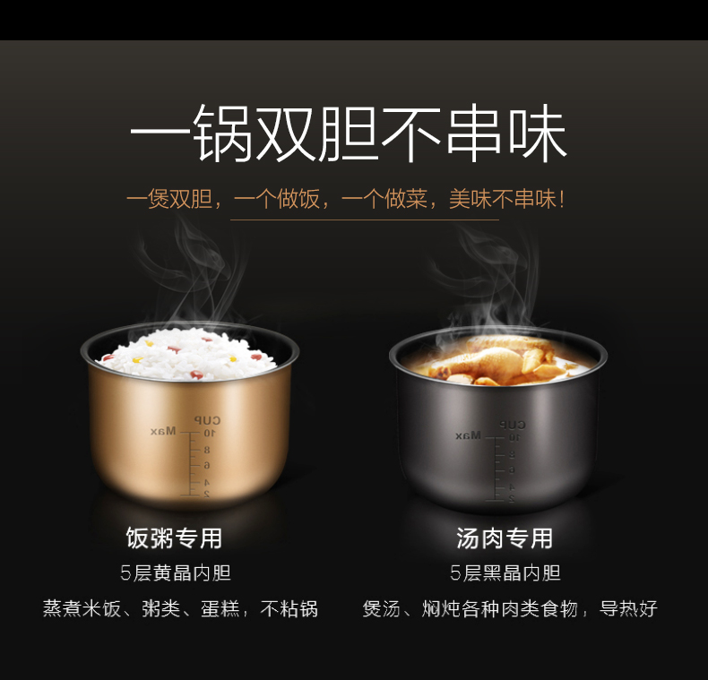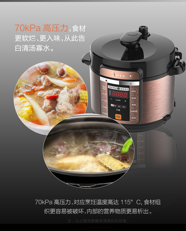 美的(Midea)电压力锅5L双内胆MY-CS5018P家用定时预约底盘加热一键排气70kpa压力PCS5018P