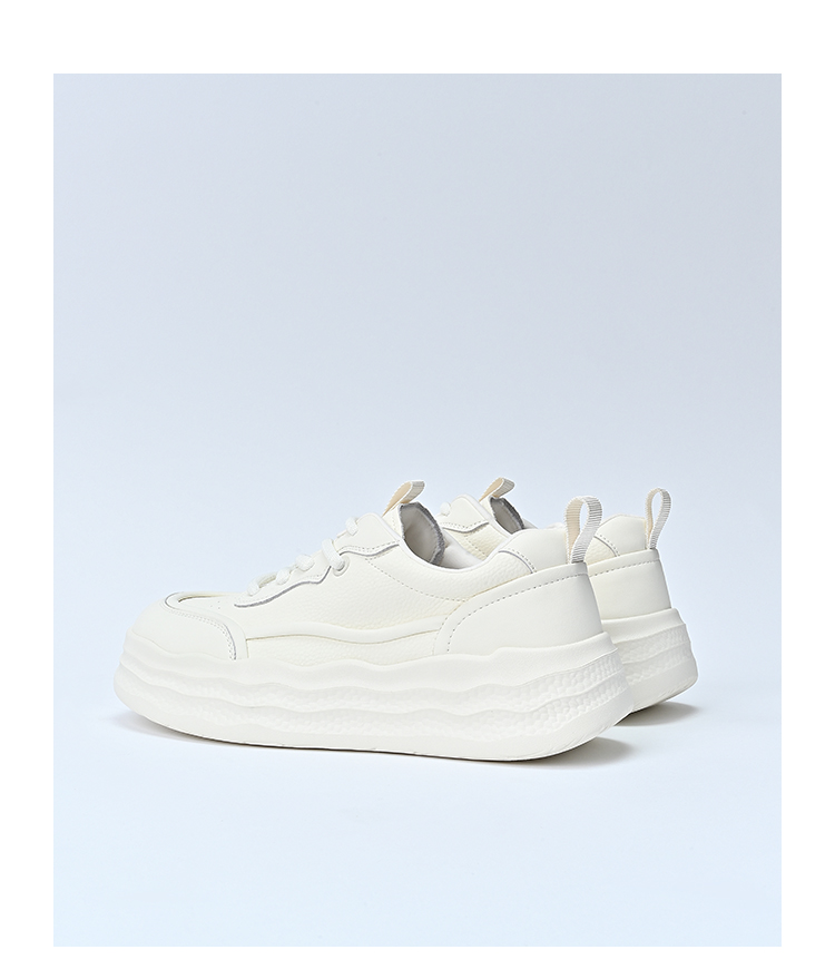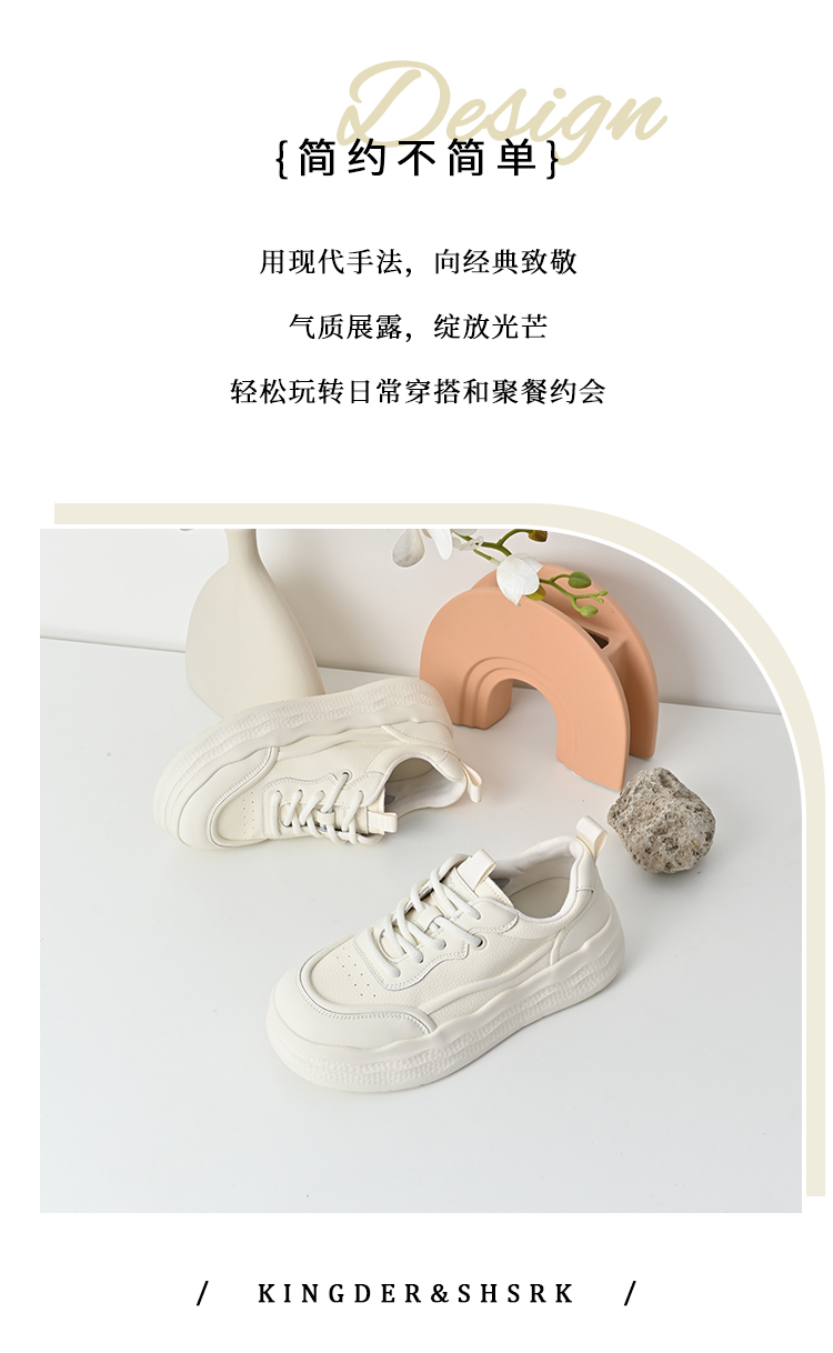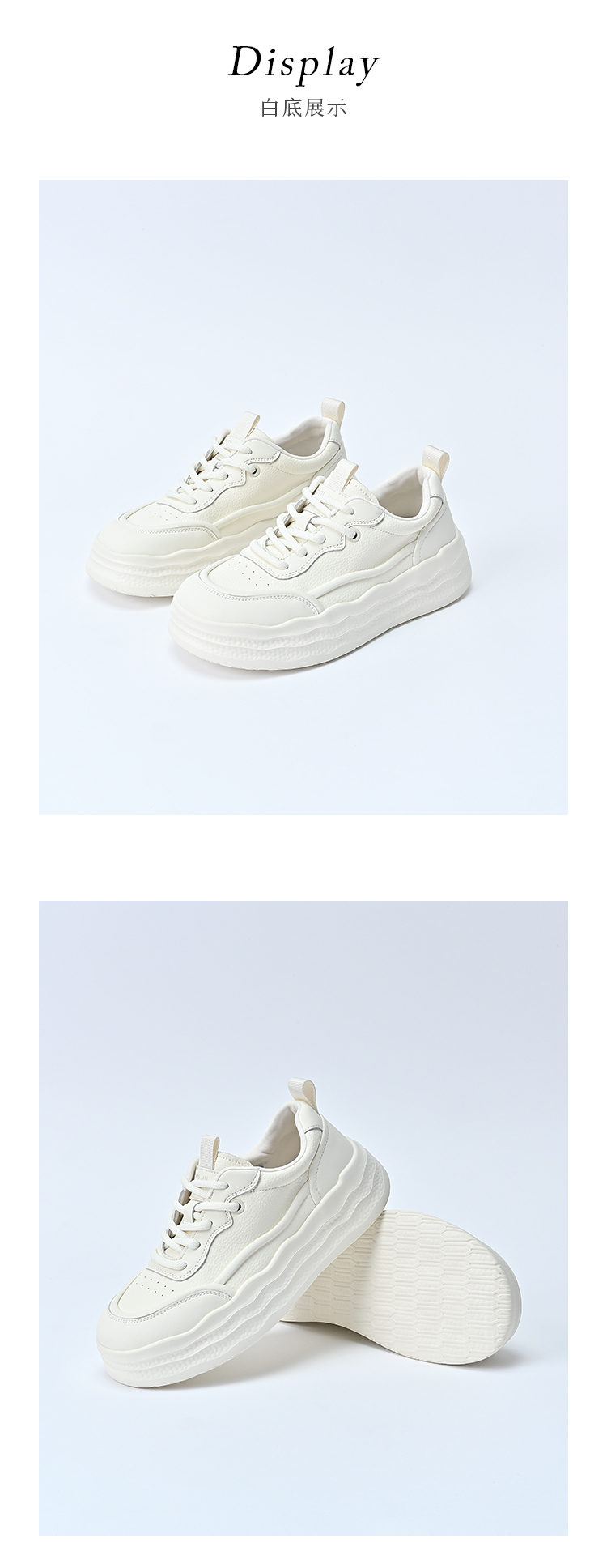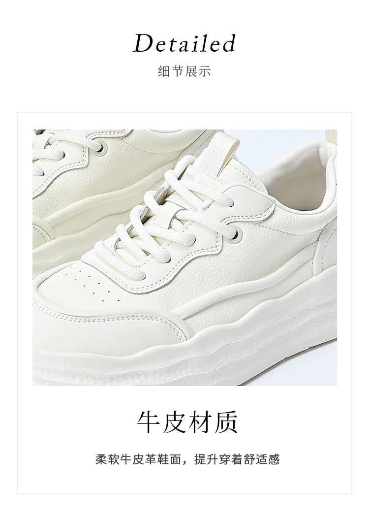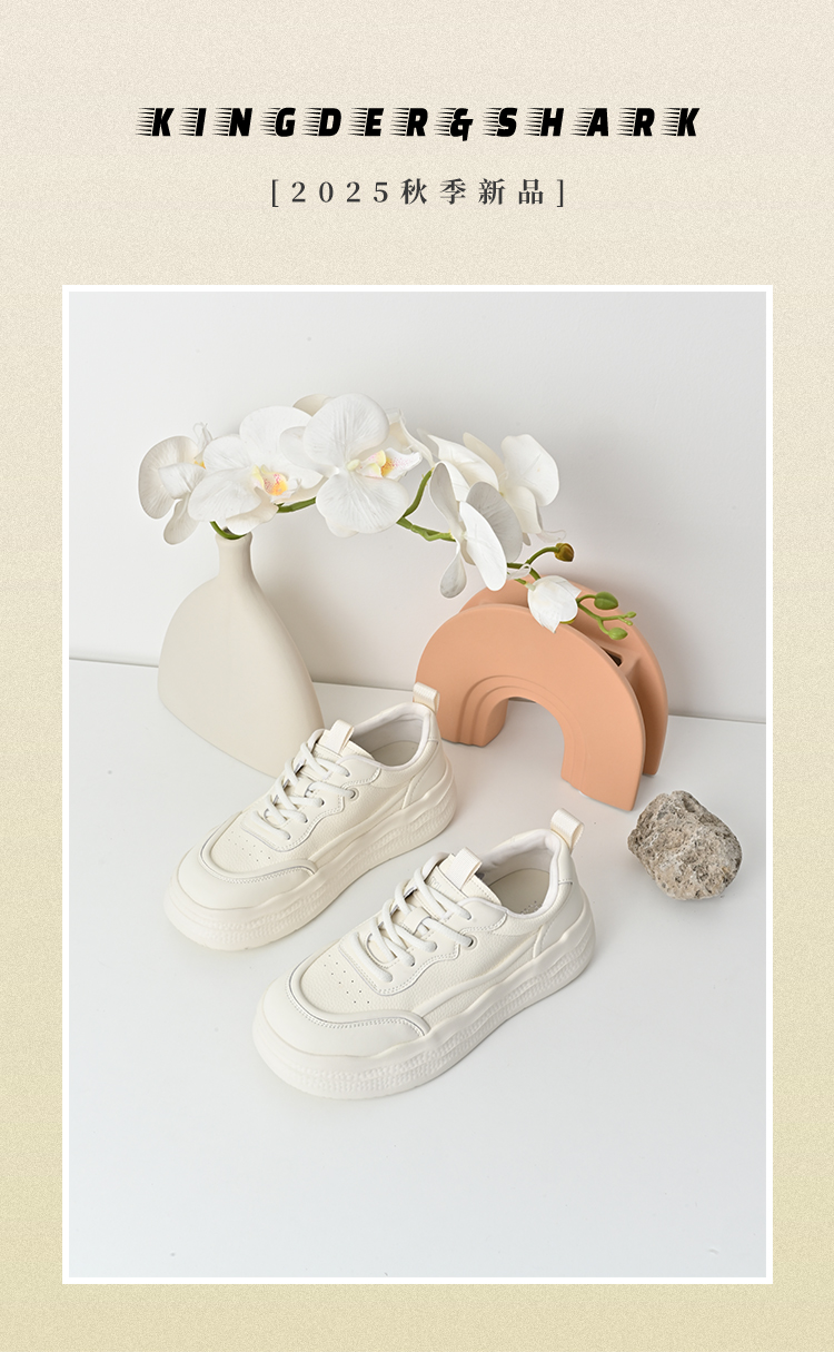 经典鲨2025年秋专柜款牛皮革百搭圆头系带厚底轻巧小白鞋女KW395-537011