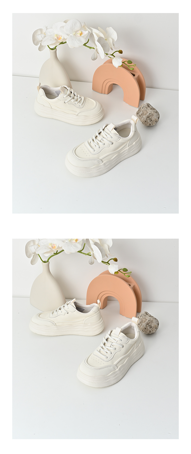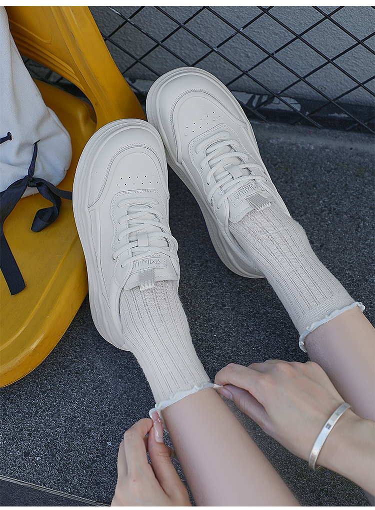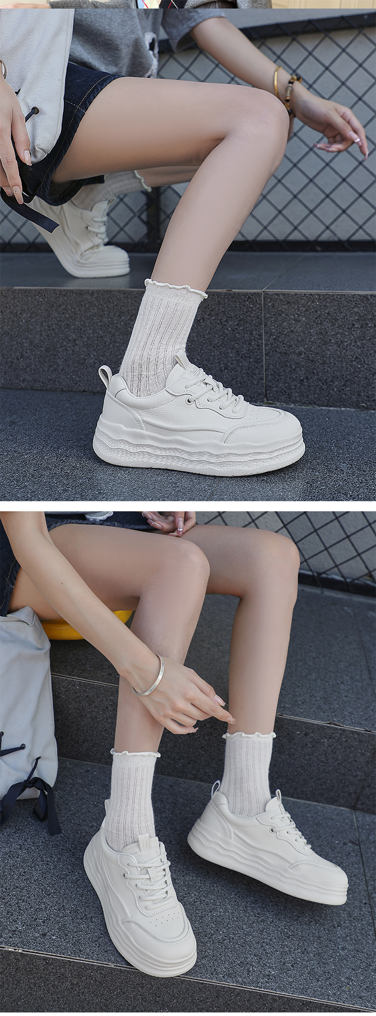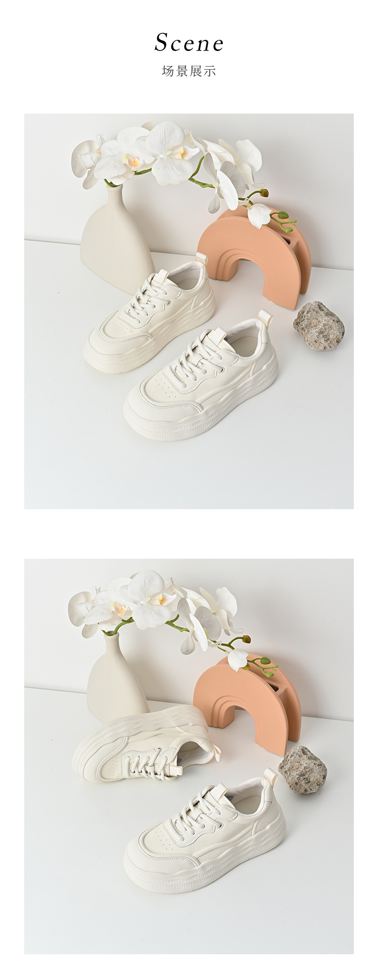 经典鲨2025年秋专柜款牛皮革百搭圆头系带厚底轻巧小白鞋女KW395-537011