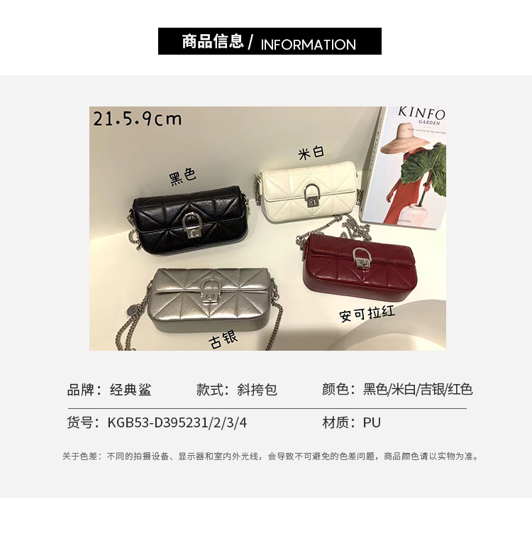 经典鲨2024年秋季新款纯色简约百搭单肩斜挎链条包KGB53-D395231