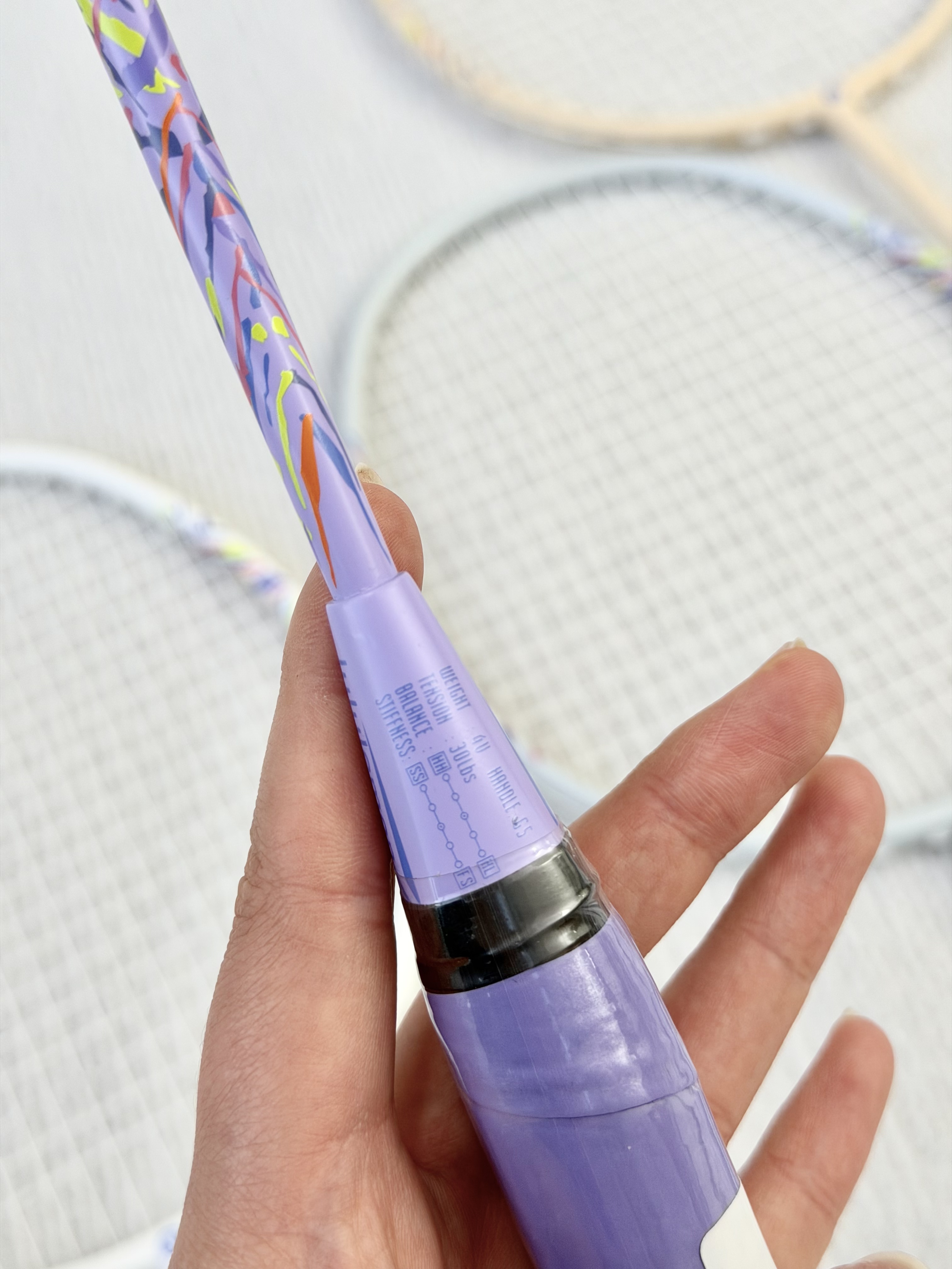 超纤细拍杆,柔软弹性强,减少手腕手臂压力,抗扭性强,减震不容易变形,有助于提高韧性和减压空气阻力,提升球拍性能!!