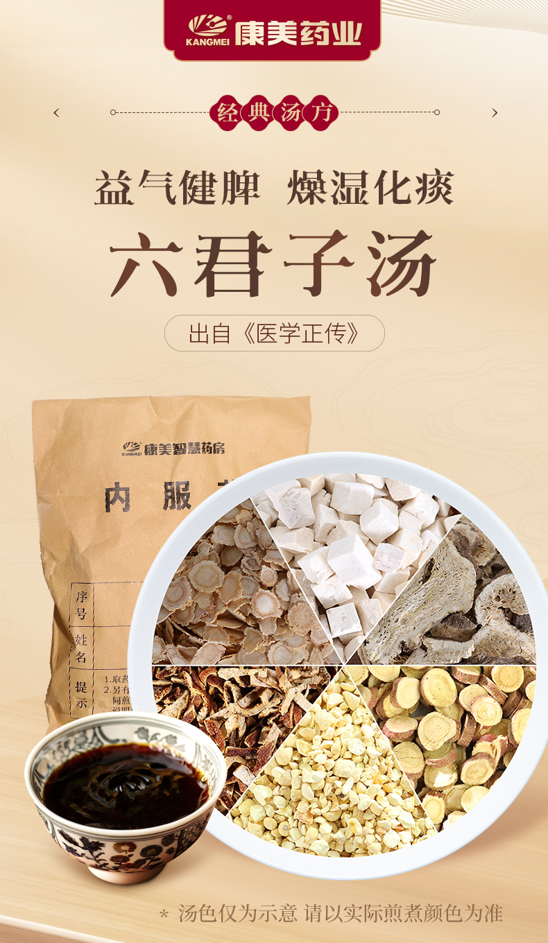 六君子汤 康美人参片/黄芪/甘草片/肉桂(丝)共17g/剂 出自《博爱心鉴》