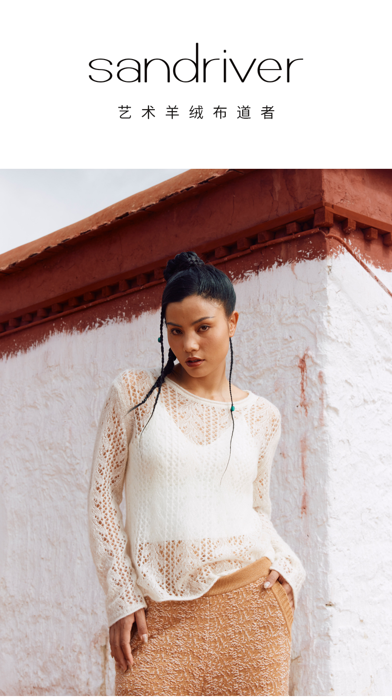 历年在巴黎时装周亮相,享誉世界的艺术羊绒品牌[Sandriver 沙涓]由羊绒布道者郭秀玲女士创立。阿拉善自有牧场纯种羔羊绒,日本国宝设计师小筱顺子,上海自有基地精工细作。承载羊绒情怀,坚持匠人品质。