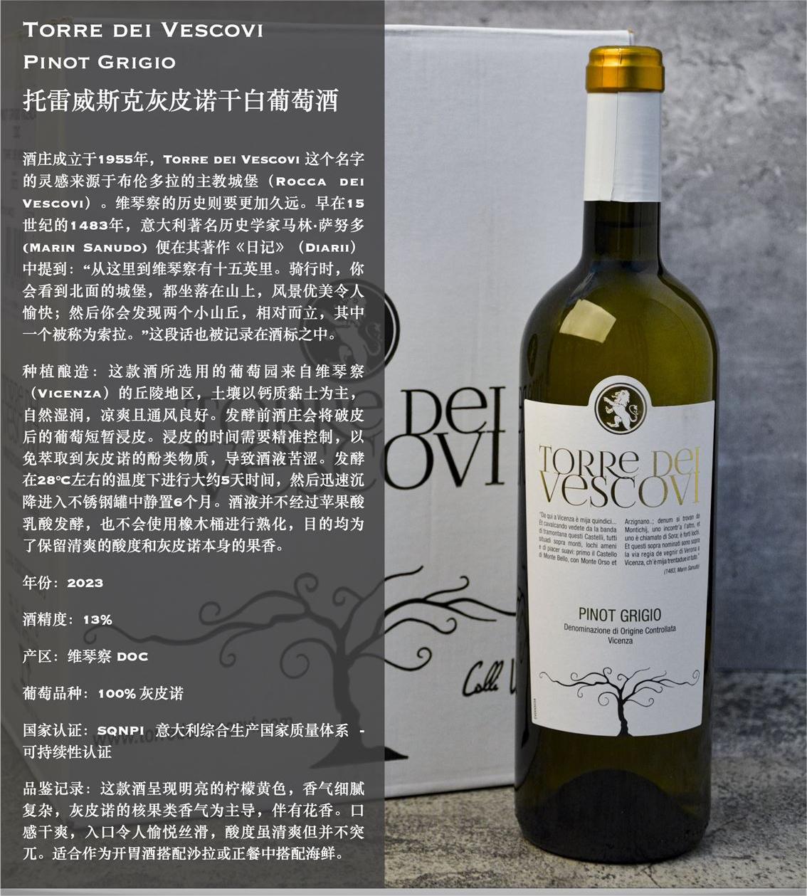 这款酒展现了典型的灰皮诺的特征,结合了清新的果香和细腻的矿物质风味,适合各种场合。它是一款适合各种饮酒体验的优雅白葡萄酒,无论是单独享用还是与美食搭配,都会带来愉悦的感受