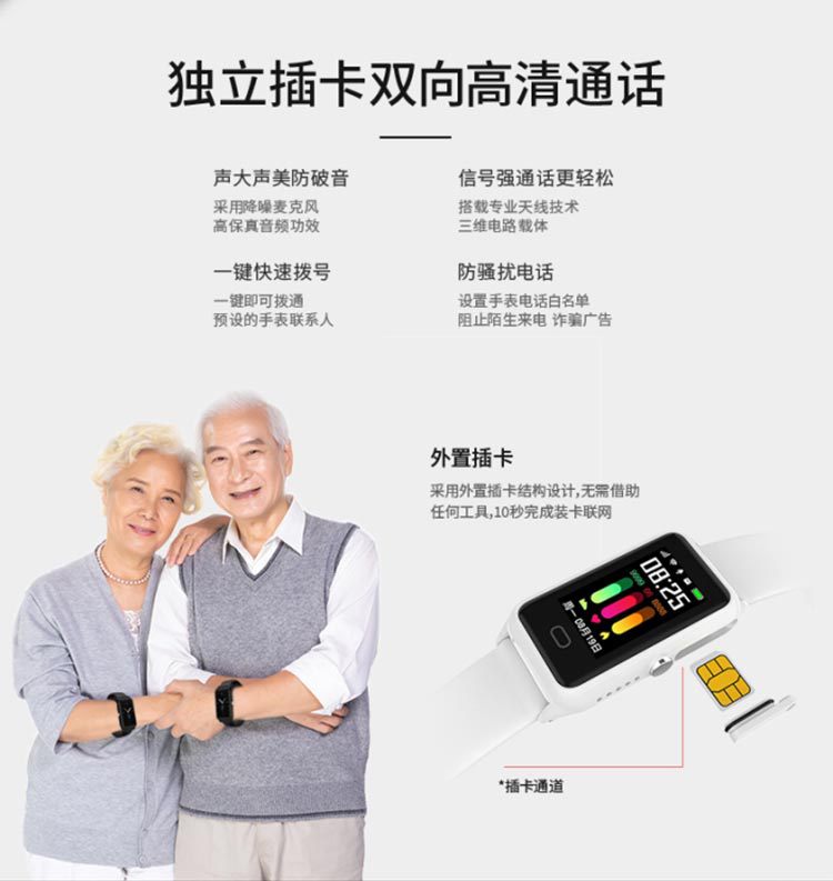 【智能手表】。老人智能手表 健康监测血压心率防跌倒报警2g定位通话手表