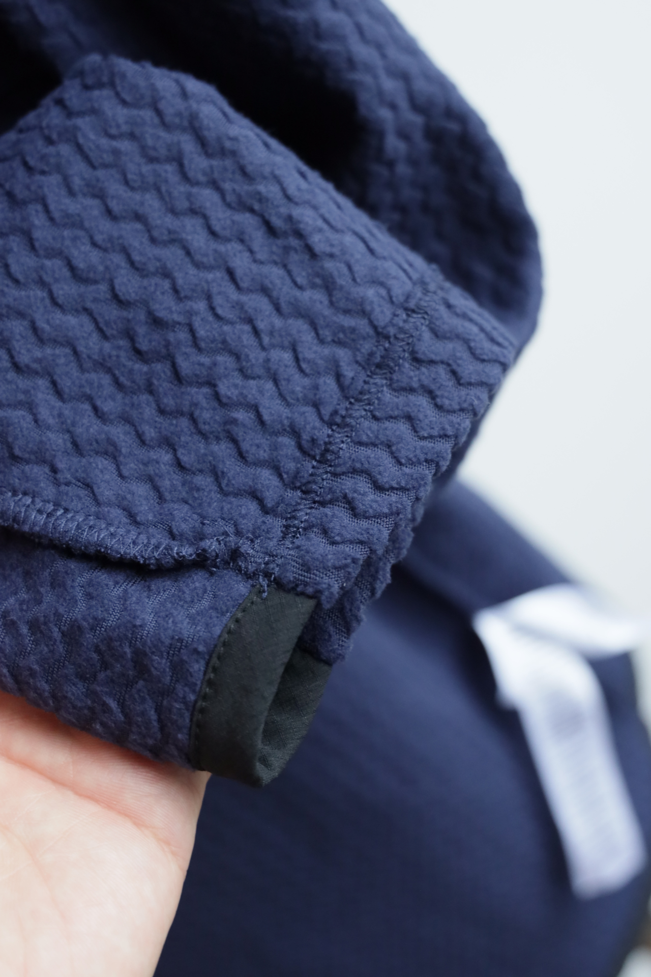 下摆和袖口采用快干编织包边,增加弹性并改善贴合度。
