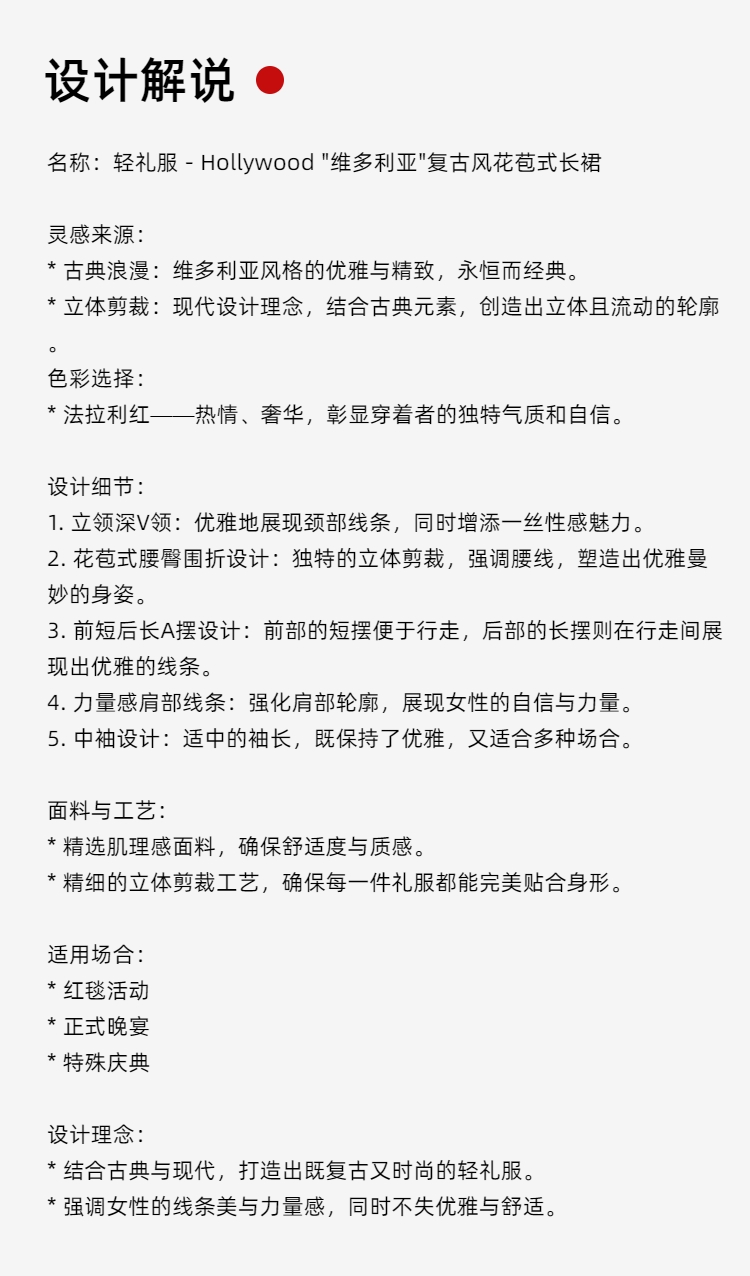 C—定制—轻礼服——“Hollywood “维多利亚”复古风花苞式长裙 2401118