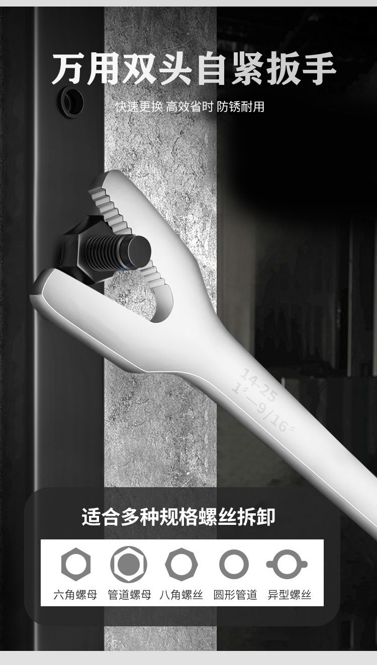 自紧扳手活动扳手多功能双头梅花开口呆扳子快速扳手