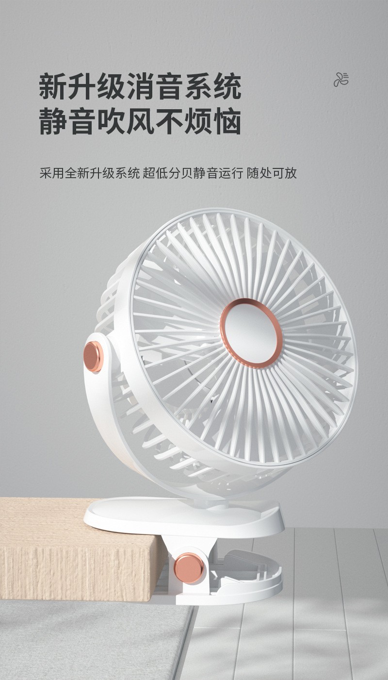 小型静音专用微型充电小风扇桌面风扇夹子充电风扇便携式床头风扇