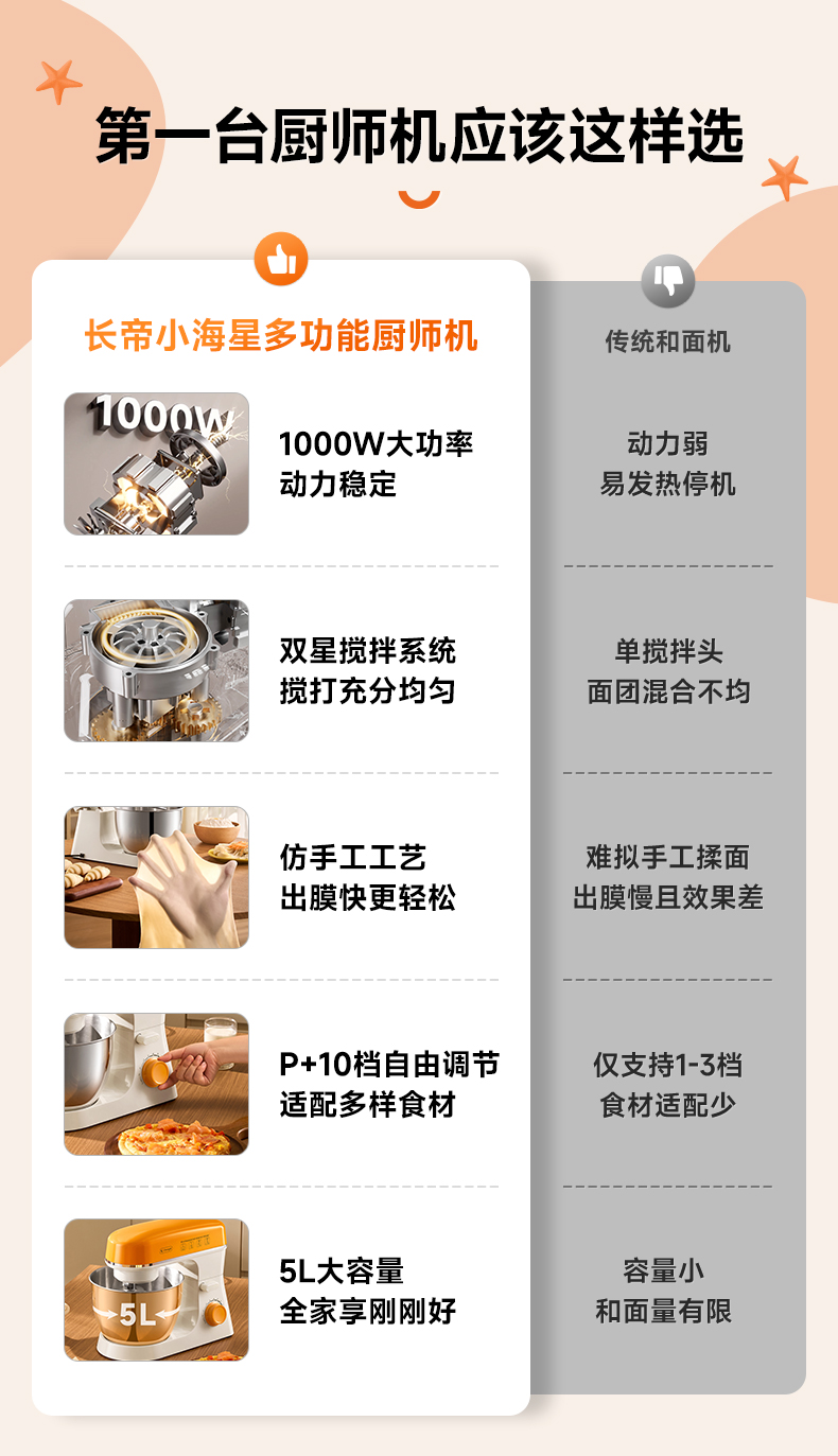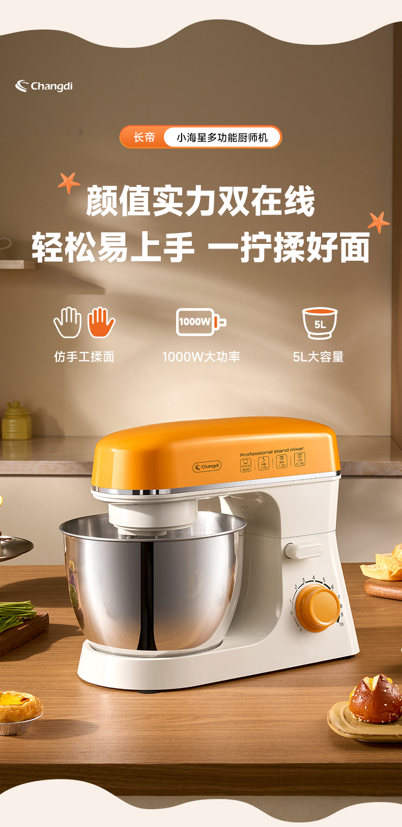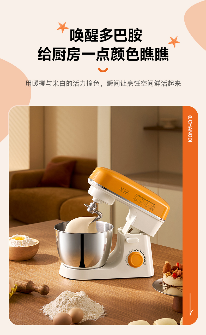 长帝小海星家用厨师机和面机打发搅拌烘焙神器