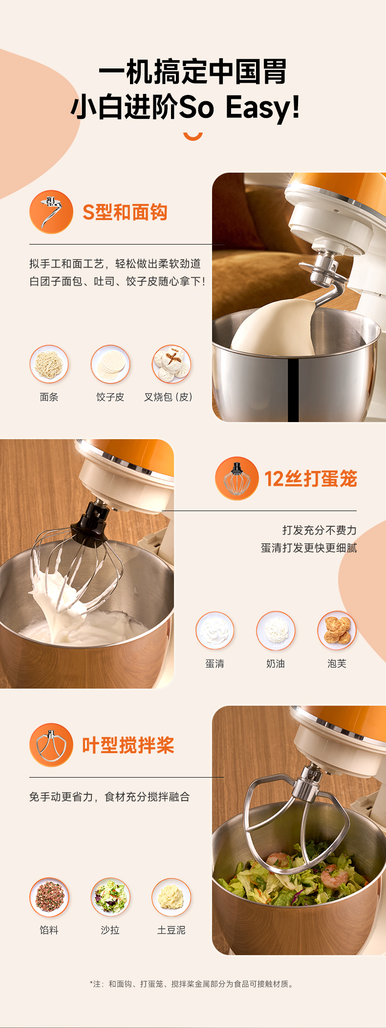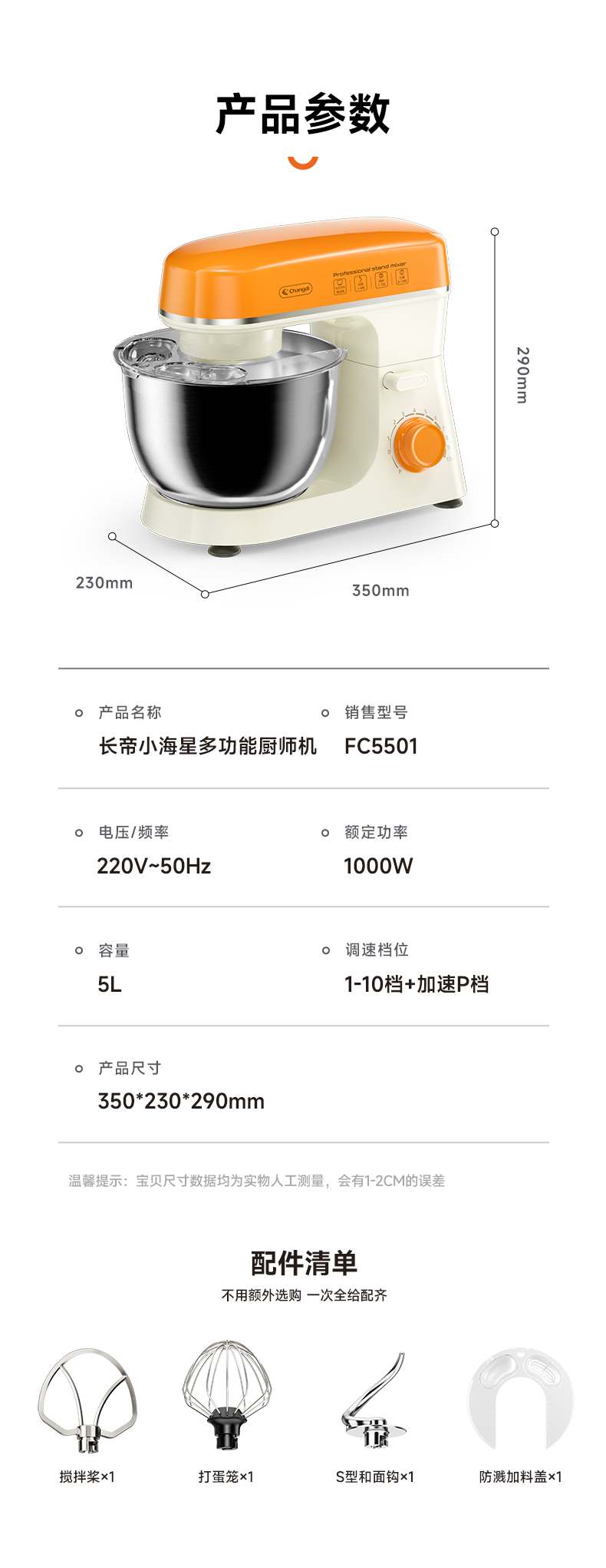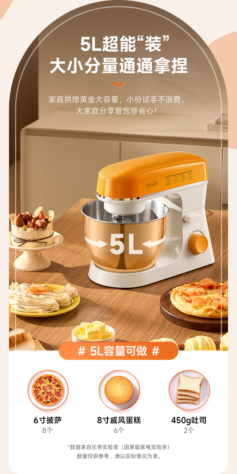 长帝小海星家用厨师机和面机打发搅拌烘焙神器