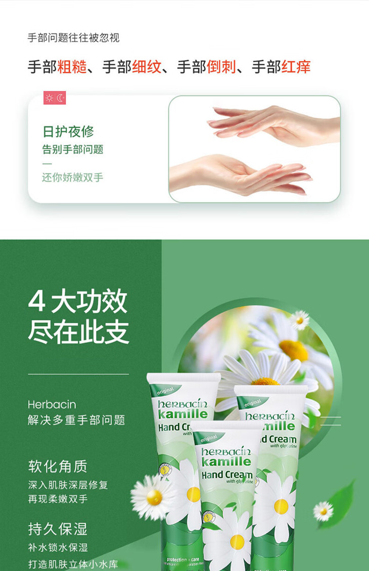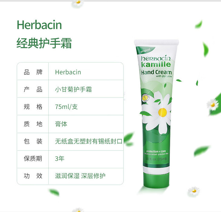 【女神节大促 限时特惠】德国Herbacin贺本清保湿美白小甘菊护手霜75ml