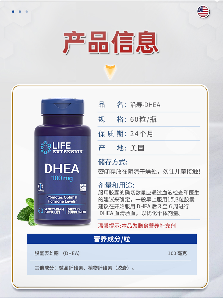 香港直邮沿寿LIFE EXTENSION DHEA脱氢表雄酮60粒