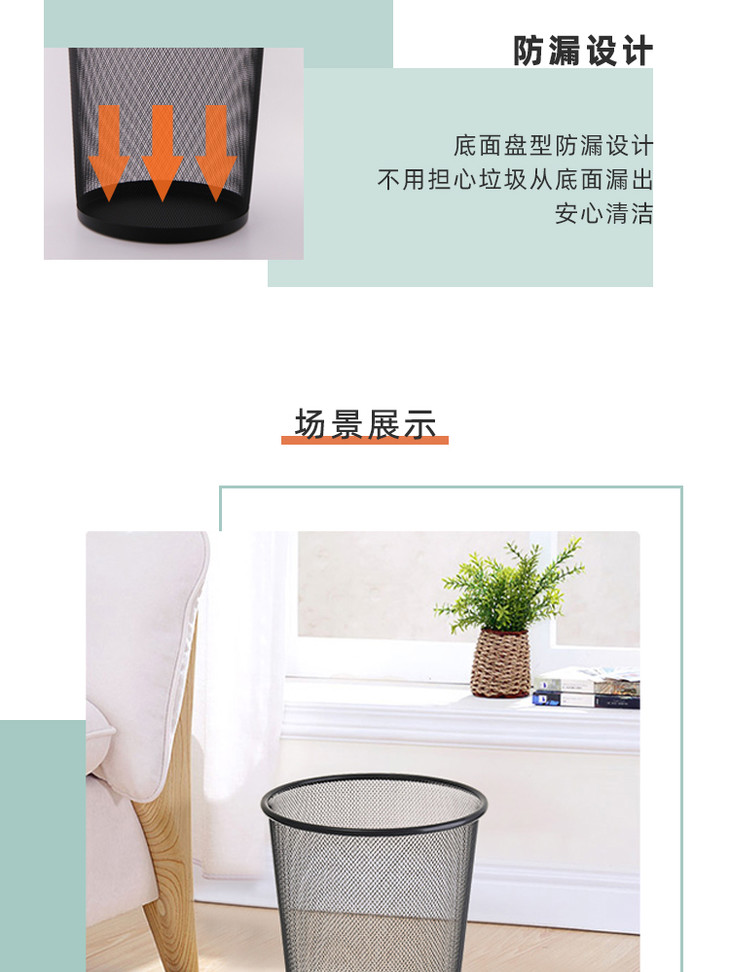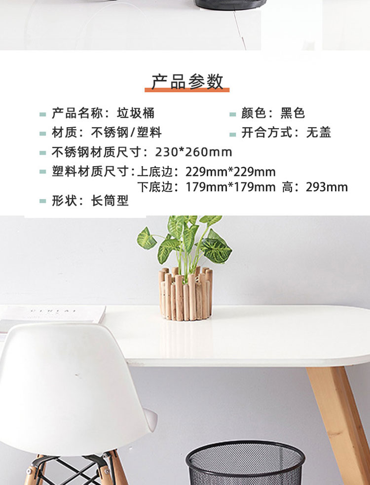园长之家办公室简约铁艺垃圾桶黑色塑料垃圾箱筒