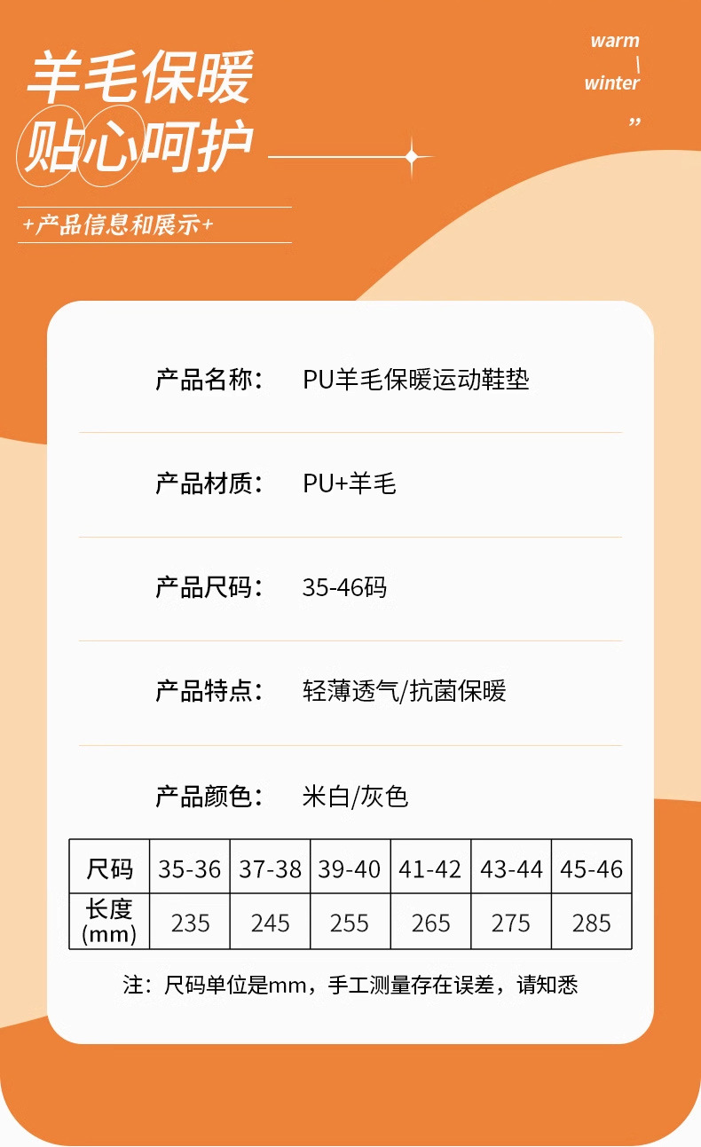 【粉丝专属❗️羊毛保暖舒适鞋垫】一触即暖,软弹大底+真羊毛,兼顾舒适和保暖!冬季踩屎感pu男女透气吸汗软底加绒加厚休闲