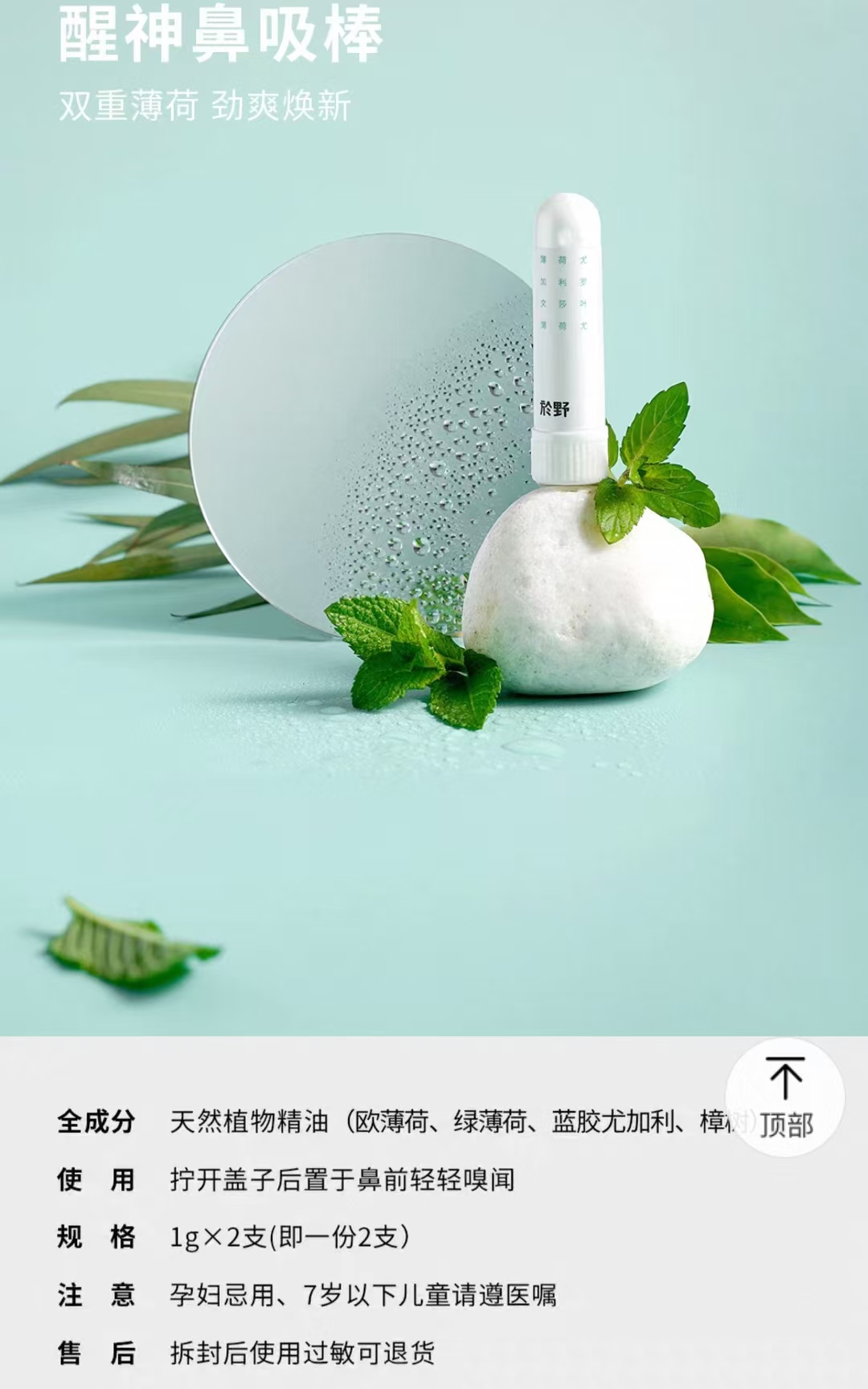 <有书强推!活在大自然里>於野薄荷醒神鼻吸棒2支装 清新提振草本鼻清凉精油开车困加班上课 bj