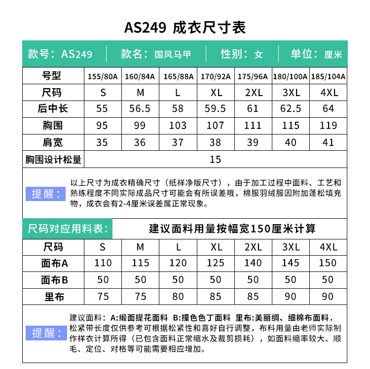 裁缝学苑AS249国风新中式马甲纸样背心女盘扣茶服唐装上衣打版裁剪样板