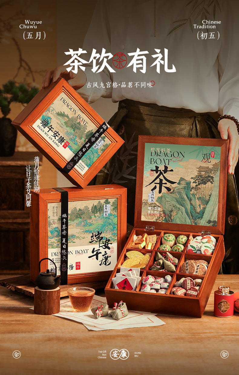 【端午节九宫格茶叶礼盒!粽享好茶】伴手礼公司活动送员工客户礼物商务茶礼送长辈实用端午礼品。ry